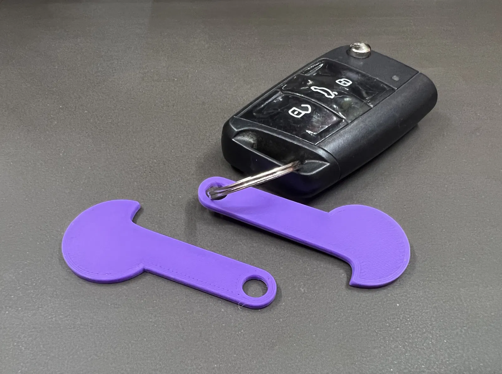 Mẫu trolley coin tháo rời cho xe đẩy mua sắm EU/US/CA/AU/UK/CZ/PL/IL, giúp mở khóa xe rồi rút xu ra lại. In 3 perimeters, 20% infill; PLA ok, tránh nóng xe hơi hoặc dùng PETG.