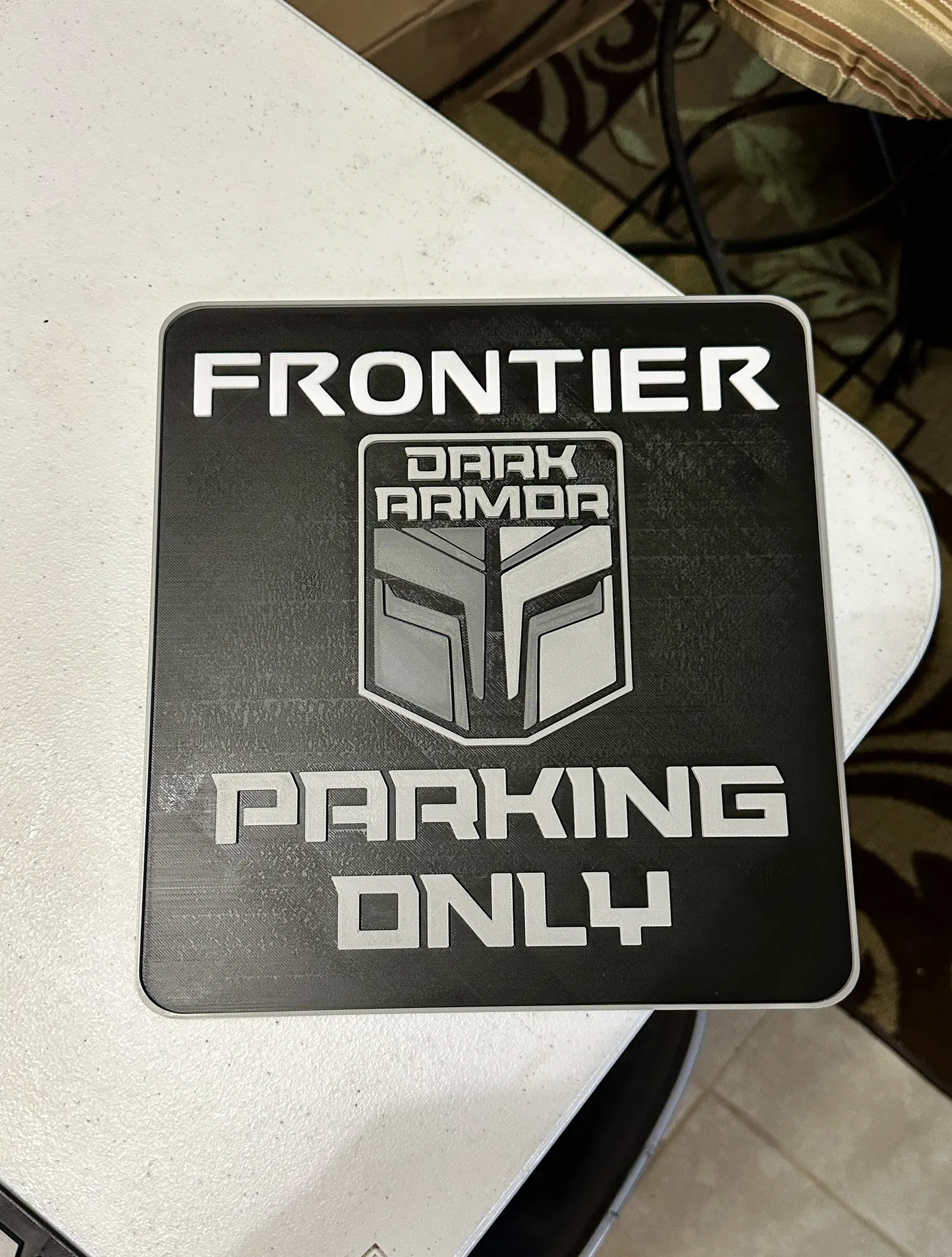 Mẫu bảng “Parking Only” dành cho xe Nissan Frontier Dark Armor. Phù hợp để in 3D và treo/đặt ở chỗ đậu xe riêng, lấy cảm hứng từ bảng Jeep Parking Only trước đây.