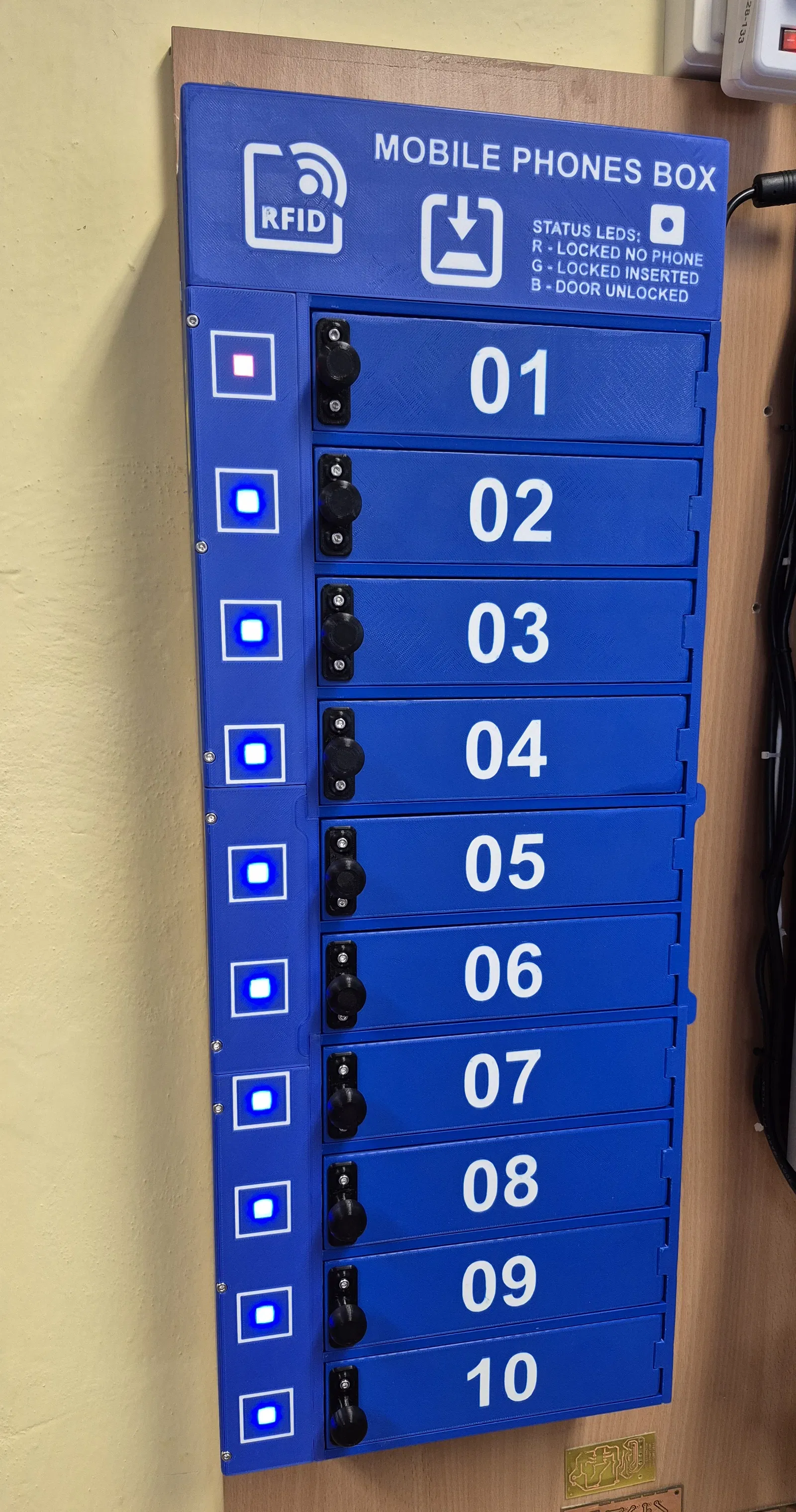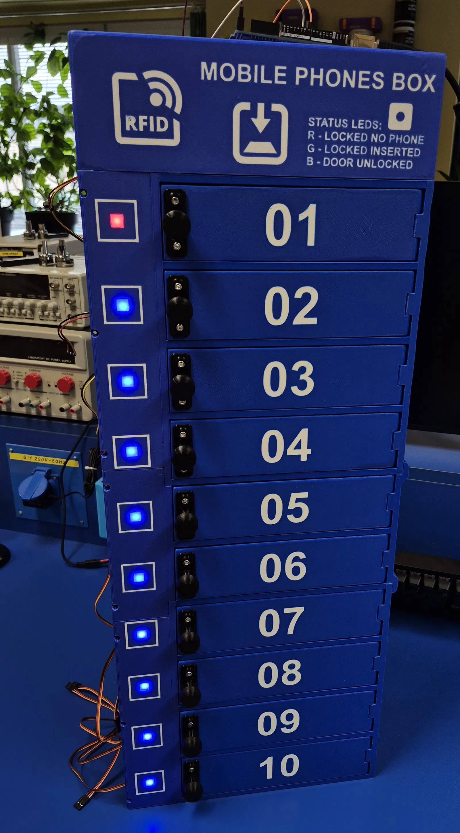 Hộp để lưu trữ 10 điện thoại di động. File in 3D có sẵn bản có và không có đầu đọc RFID.