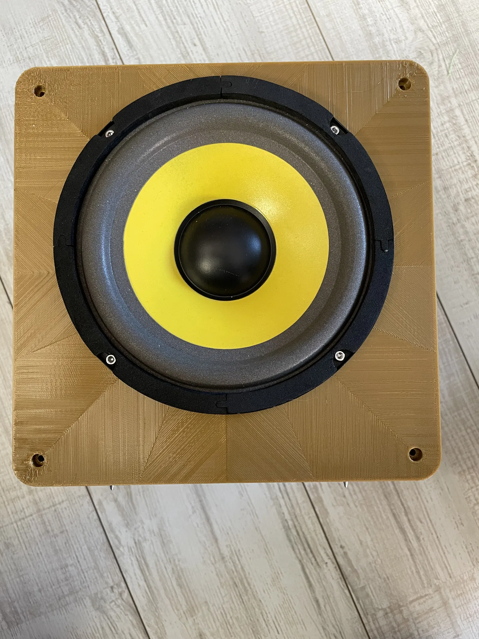 Mẫu thùng loa woofer 6" (subwoofer case) được thiết kế bằng Gemini và OpenScad. Đi kèm file Scad và các file đã in như hình minh họa. Danh sách vật tư dùng PLA, binding post, spikes và loa 6".