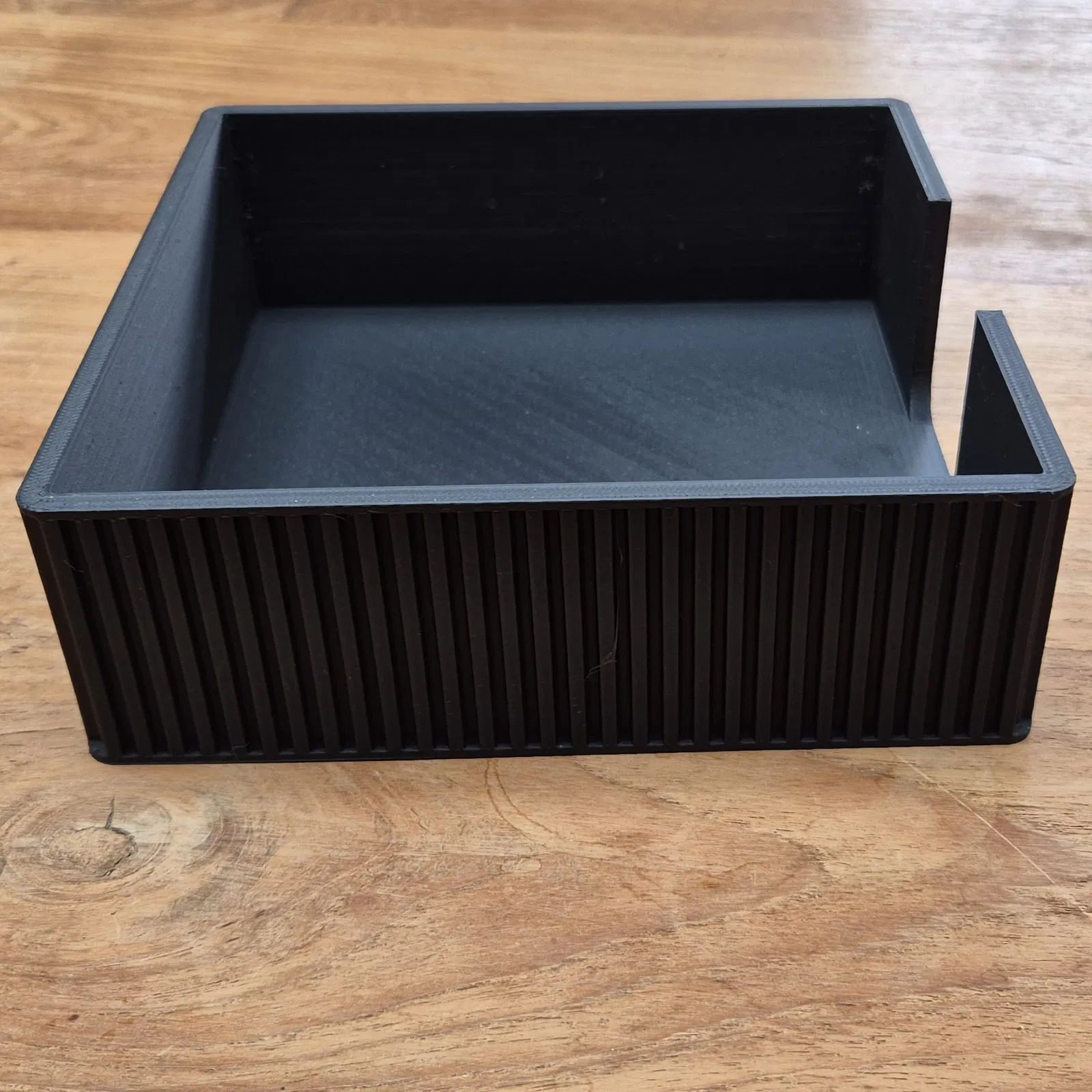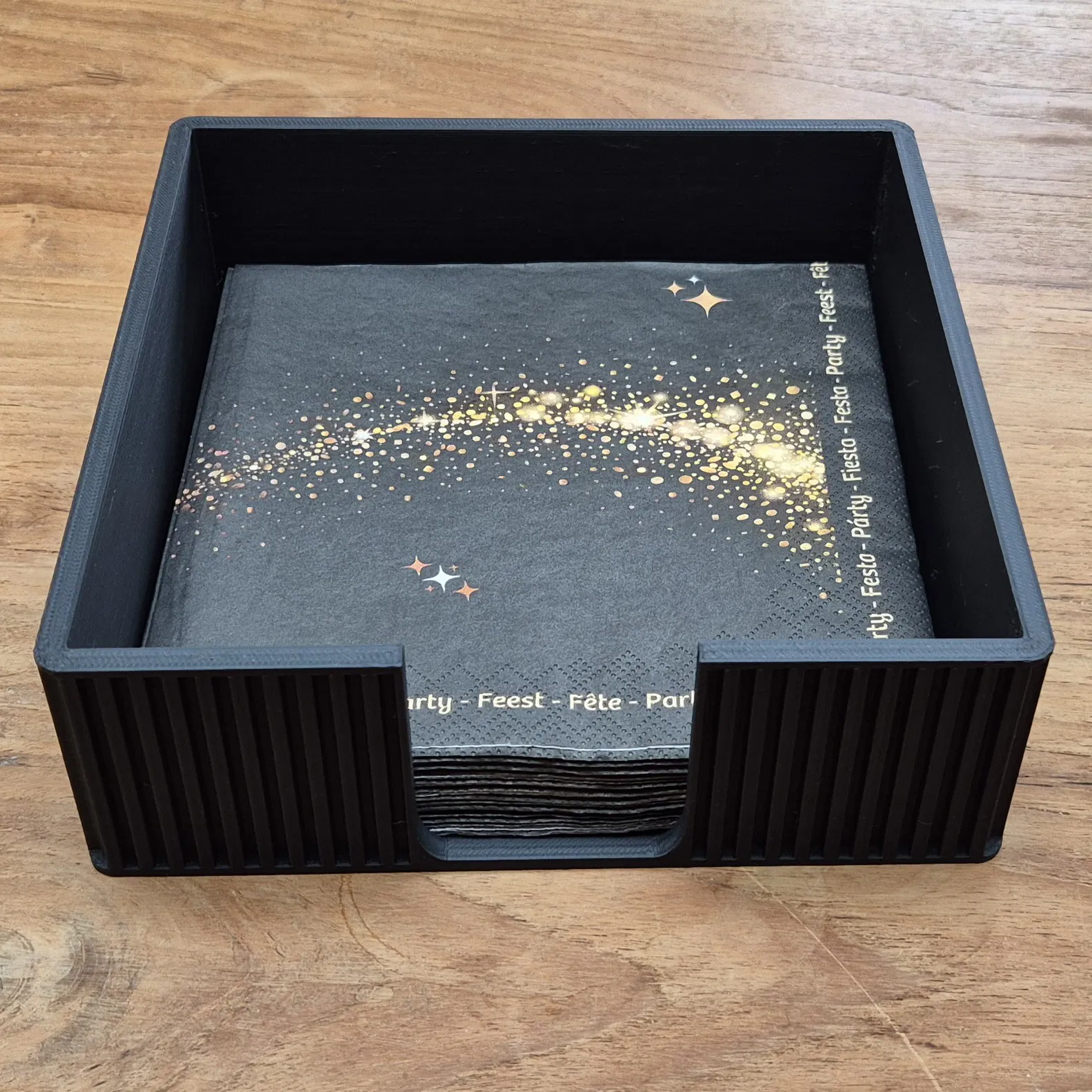 Mẫu Napkin Holder thiết kế hiện đại, bề mặt texture nhìn đẹp, mặt trước mở giúp lấy khăn nhanh. Phù hợp khăn giấy có kích thước đáy 16.5 x 16.5 cm. In thử với PLA, layer 0.2mm, infill 20%.