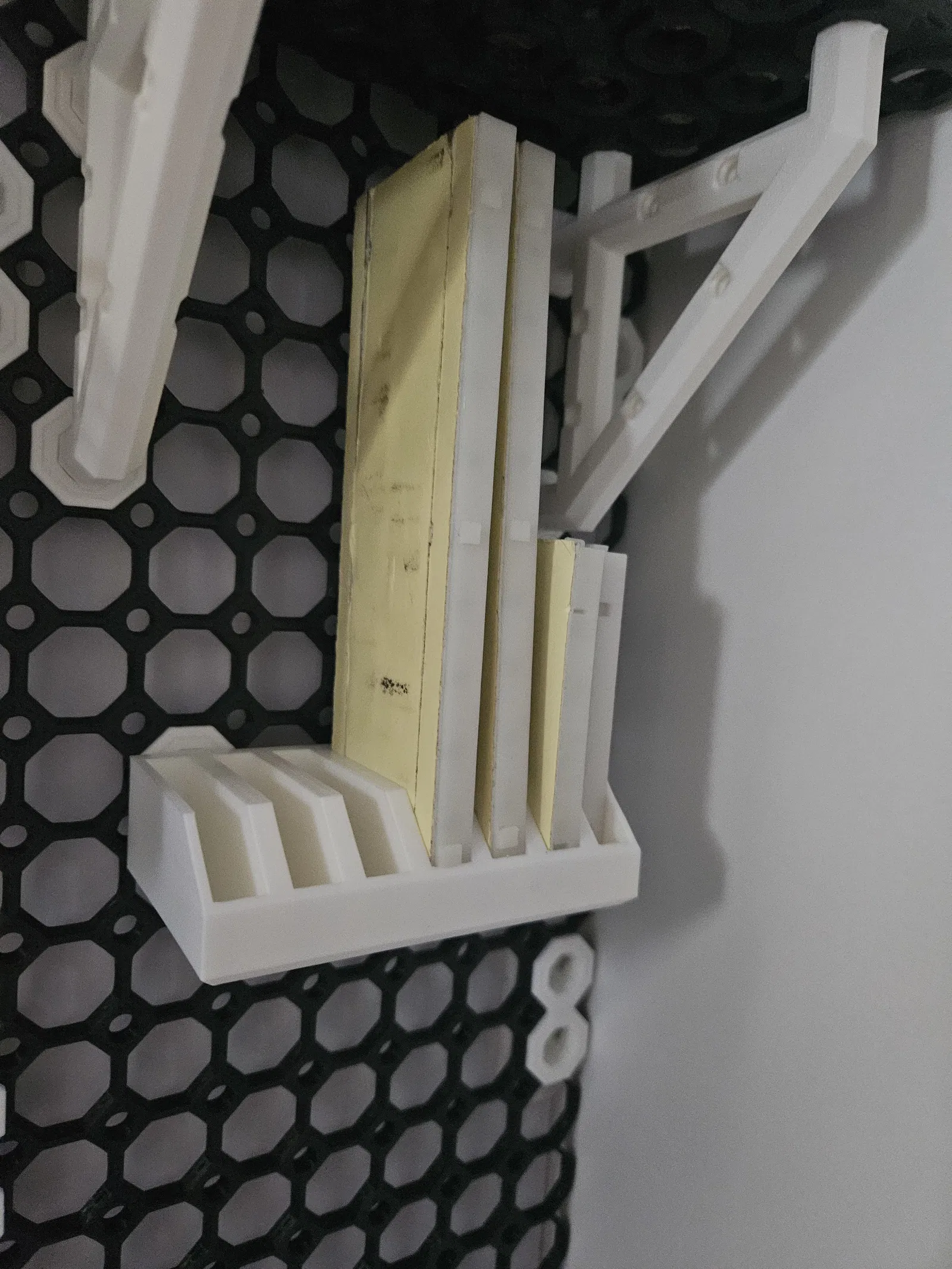 Giá đỡ breadboard cho hệ Multiboard, giúp cất gọn và chứa được tối đa 7 breadboard. Đã có hướng đặt in trong file STL, thiết kế in lộn ngược để hạn chế supports; nếu bám bàn in kém thì nên thêm brim.