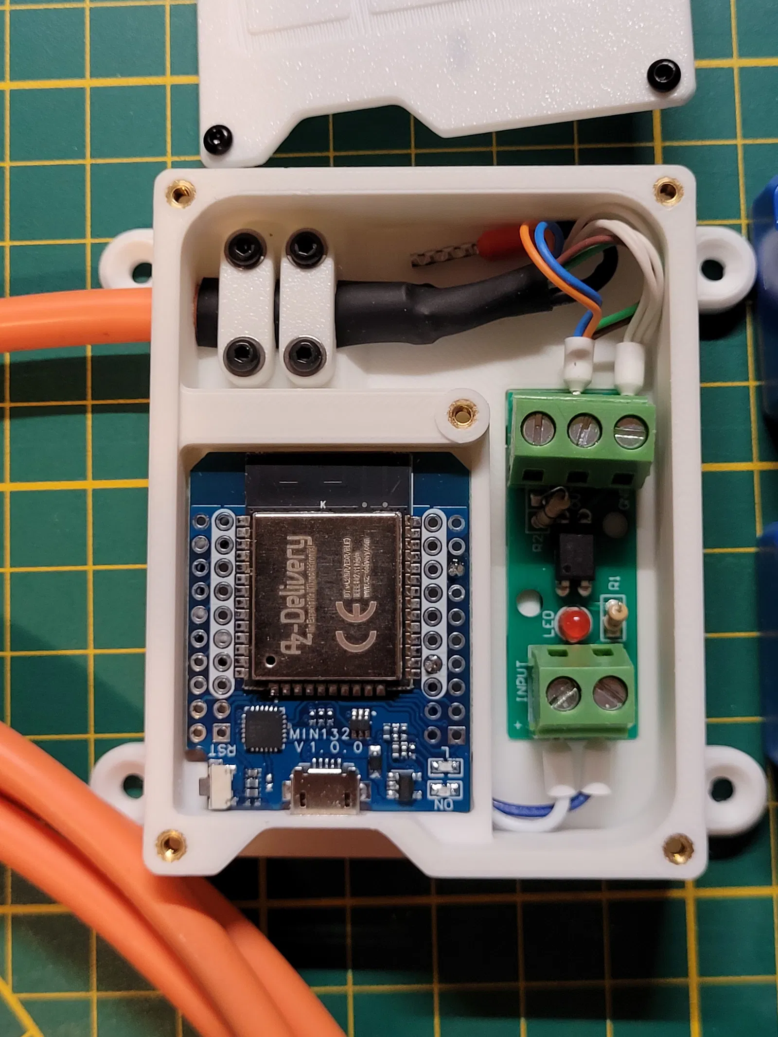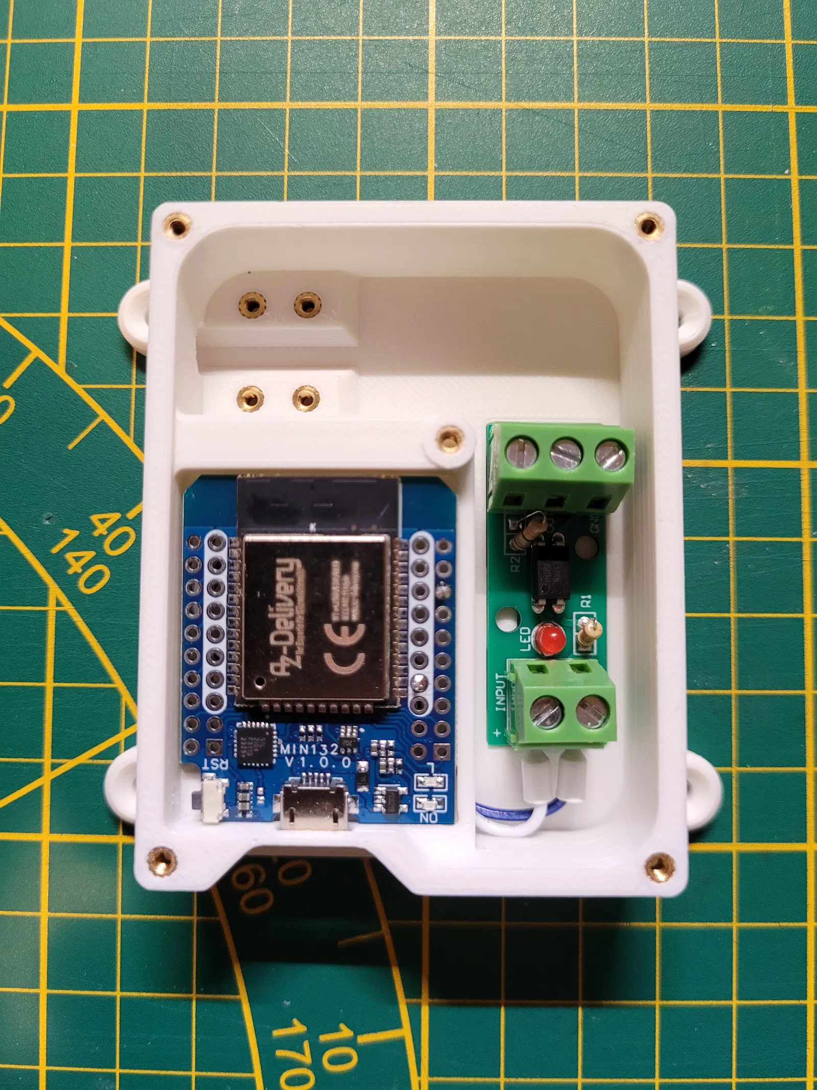 Mình đã thiết kế một vỏ hộp nhỏ gọn cho vi điều khiển AZDelivery (Wemos) ESP32 D1 Mini NodeMCU WiFi, có chừa sẵn chỗ cho một module optocoupler và kẹp giữ cáp cho cáp RS485 Modbus hoặc cáp S/FTP.