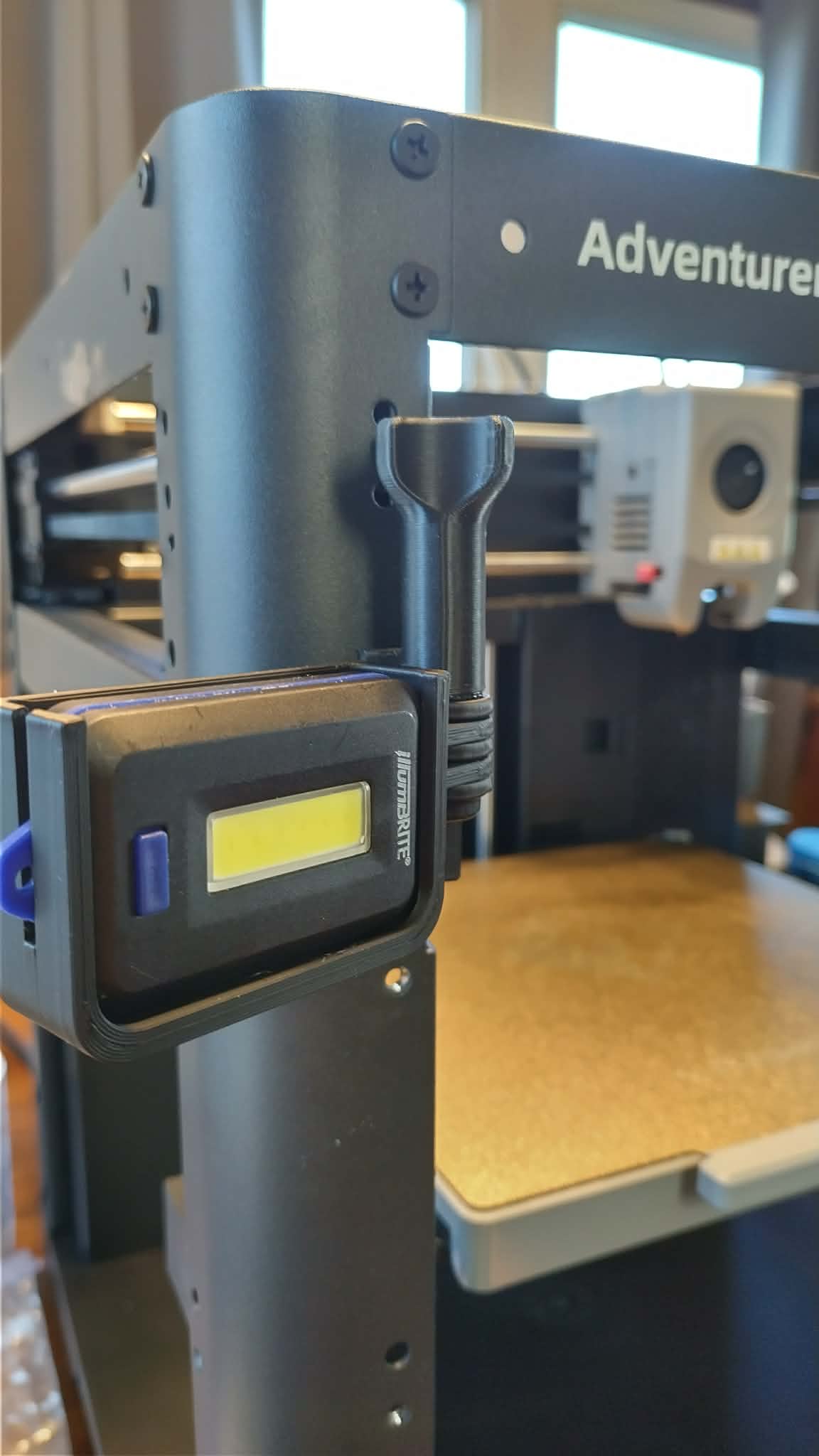 Ngàm gắn đèn và giá đỡ đơn giản cho máy in 3D. Giữ được đèn LED chạy pin loại IllumBRITE và các mẫu tương tự. Cần 1 bu-lông lục giác M5 x 25 kèm ê-cu, và một loại núm siết (tightening knob) bạn chọn để chỉnh/gá. Để bắt giá đỡ lên máy in, bạn sẽ cần thêm bu-lông hoặc ốc vít phù hợp với máy in của bạn.