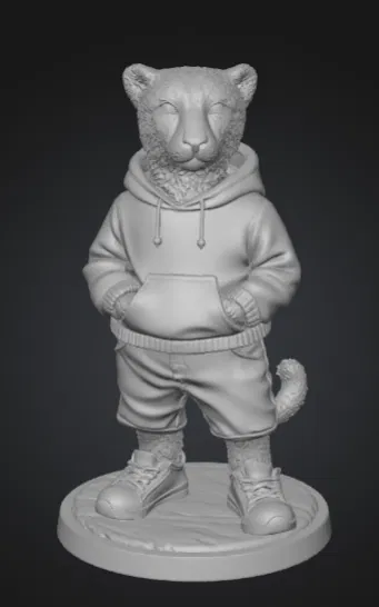 Cool Cheetah là mẫu figurine báo gê-pa nhân hoá phong cách stylized, diện urban streetwear và đứng thẳng trên đế tròn trưng bày. Rất hợp để in 3D rồi sơn tuỳ biến, tạo nhân vật cá tính.