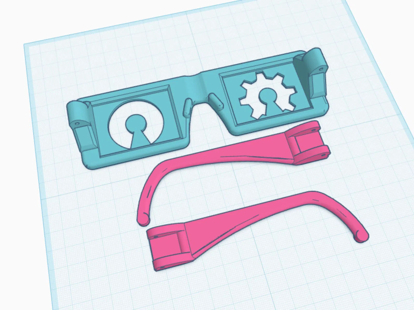 Mẫu kính shutter shades dùng logo open source làm khe nhìn. File có sẵn 2 càng nên khỏi mirror. Có hướng dẫn in càng cho chắc hơn và cách gắn bằng rivet bằng filament, tạo đầu bằng soldering iron.