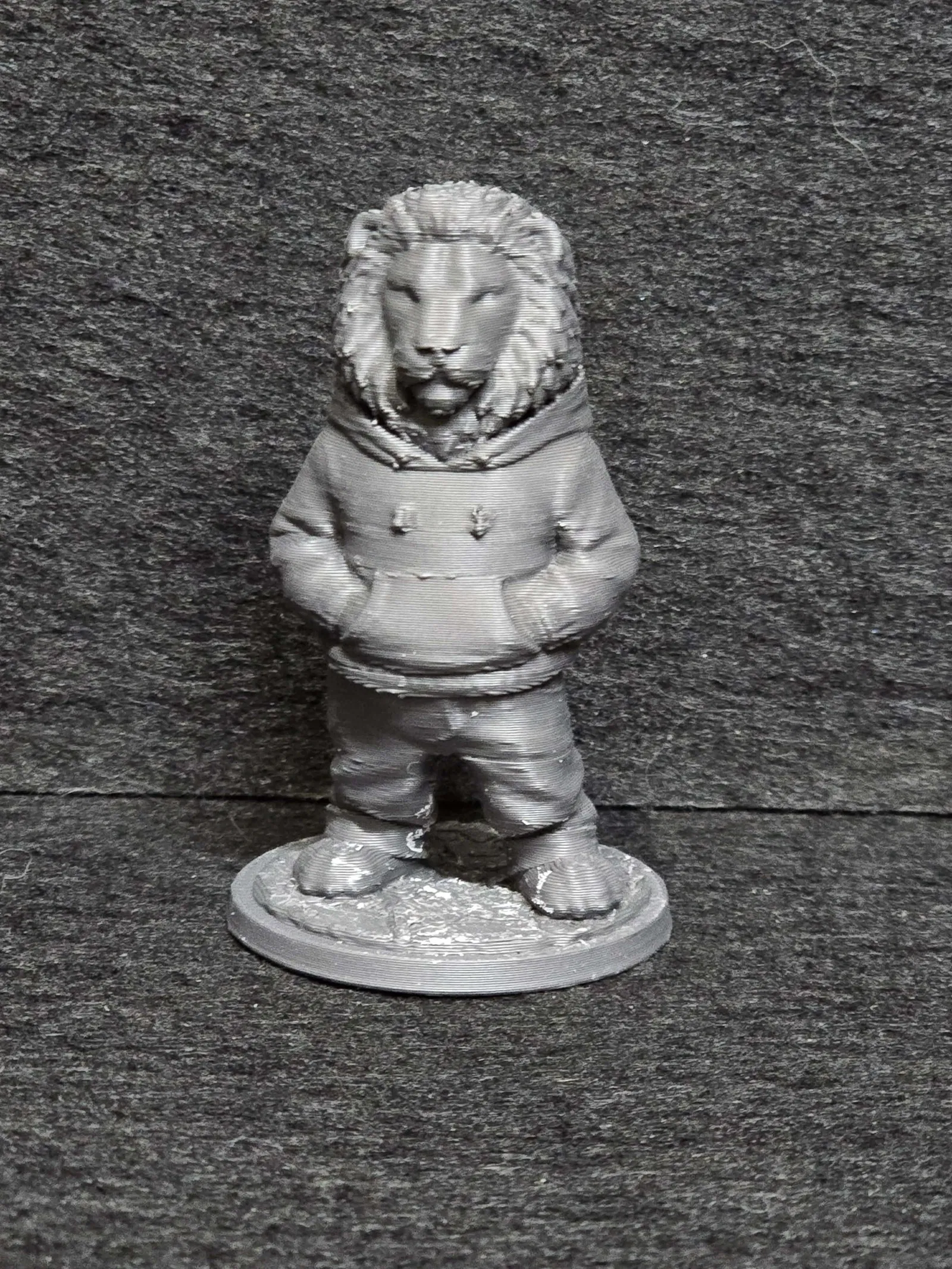 Mẫu 3D print này khắc họa một chú sư tử đầy cuốn hút với một cú “bẻ lái” hiện đại bất ngờ. Đứng thẳng người, toát ra vẻ điềm tĩnh và uy nghi, anh chàng mặc hoodie dáng relaxed và quần kiểu jogger, hai bàn chân trước nhét hờ vào túi trước như thể vừa làm chủ thảo nguyên, vừa làm chủ luôn cả vỉa hè.