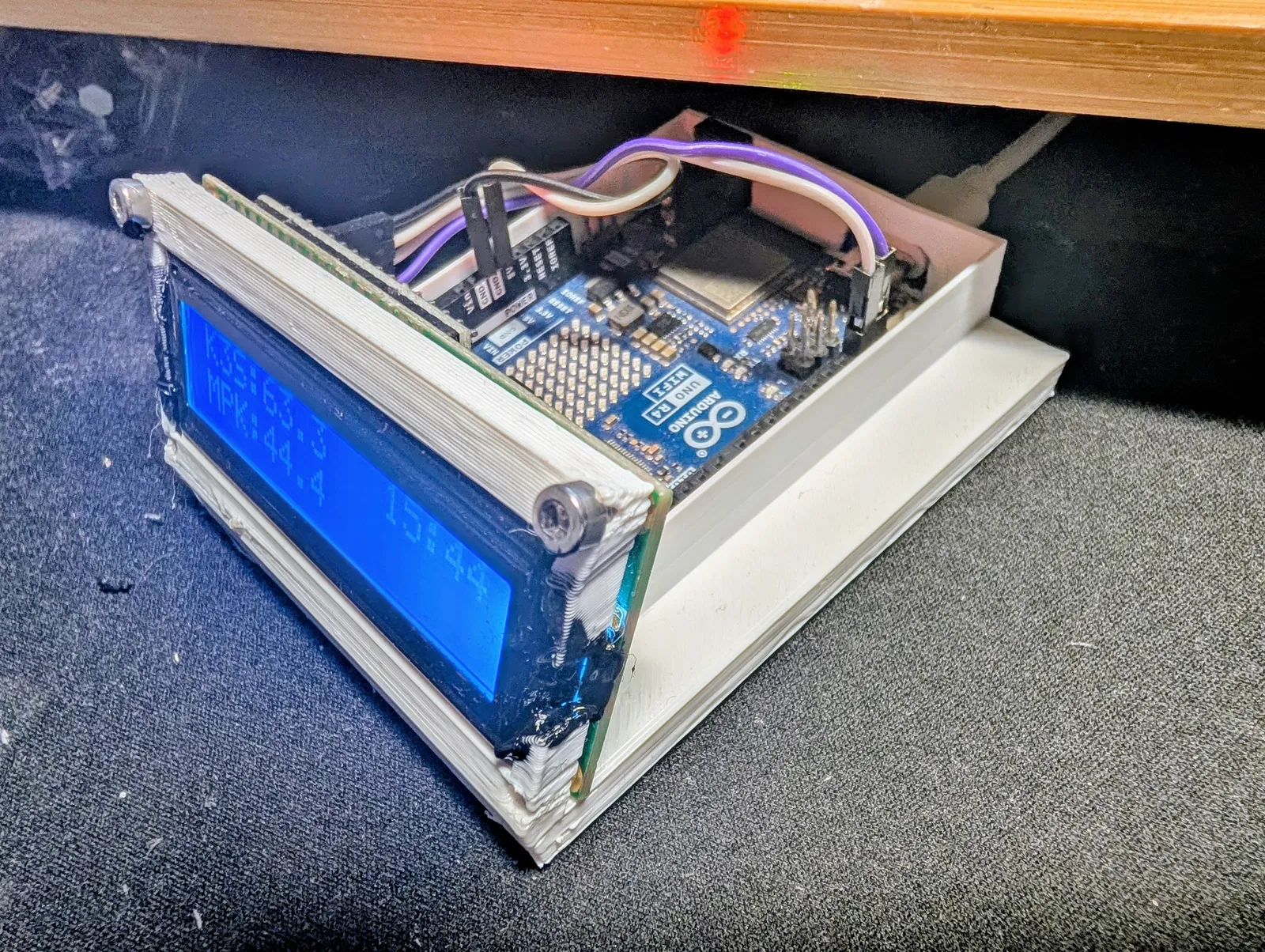 Giá đỡ đơn giản cho màn hình I2C LCD và bo theo chuẩn Arduino Uno (ví dụ Arduino R4 WiFi) để hiển thị dữ liệu giám sát như nhiệt độ từ Raspberry Pi qua HTTP. Có kèm repo GitHub chứa code và file nguồn Shapr3D.