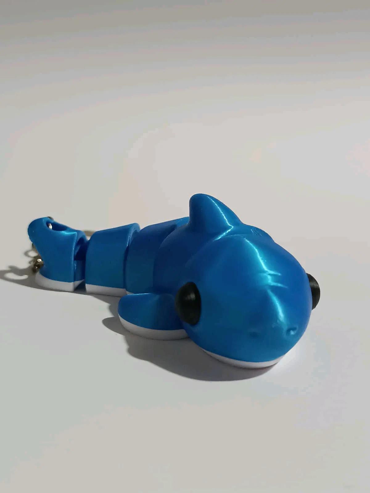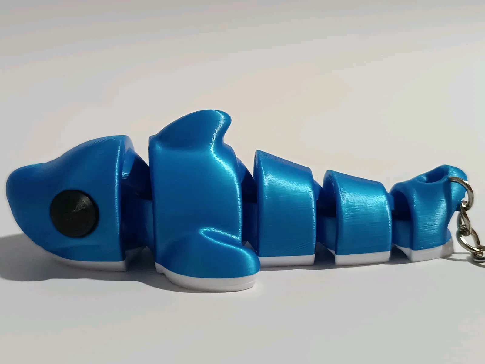 Mẫu Flexi Shark kèm keychain, thiết kế in một phát là xong, không cần Supports hay Brim. Gợi ý thông số: Layer Height 0.20, Walls 3, Infill 20% gyroid; Arc fitting bật, giảm tốc ở outer walls và top surfaces.