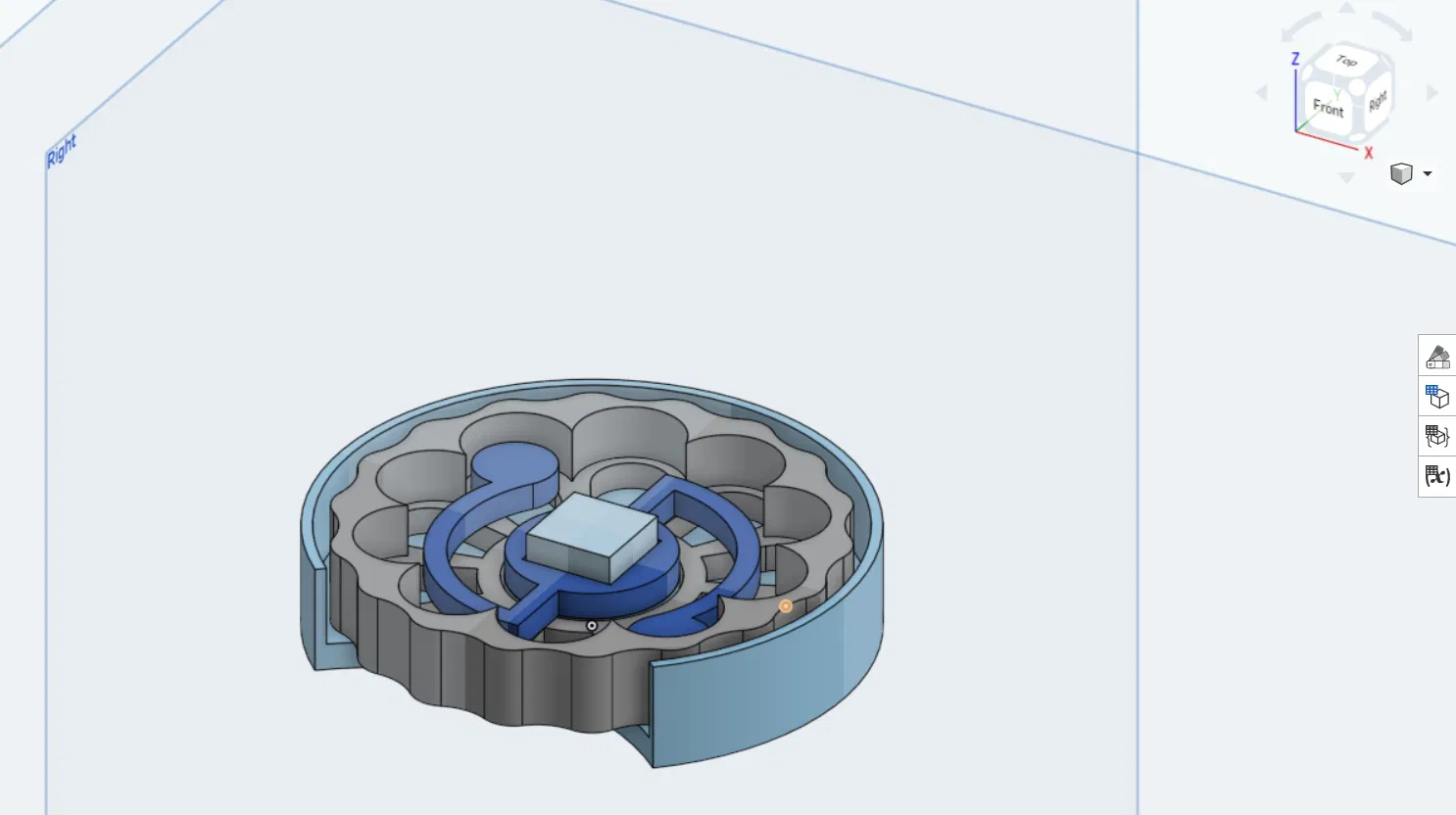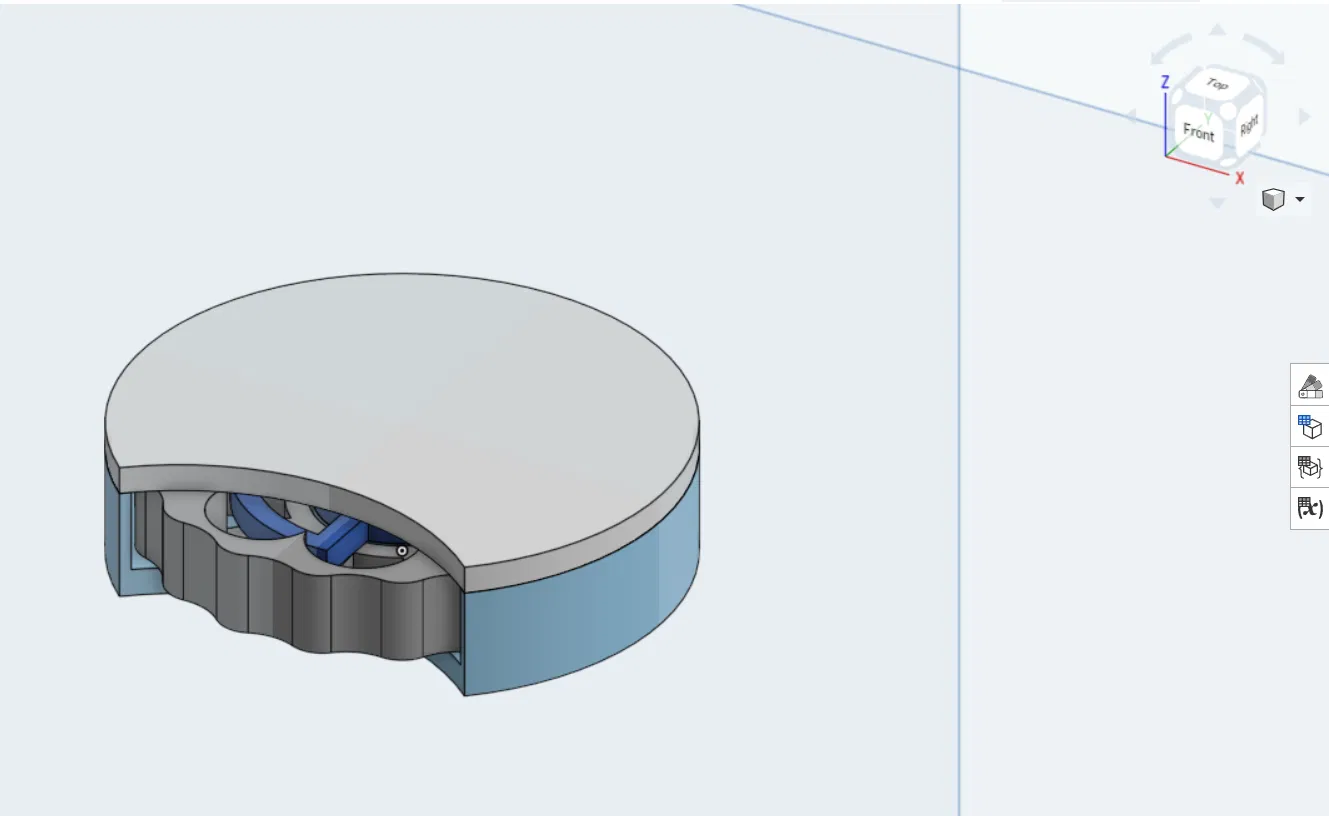 Mình tạo cái fidget này dựa trên một mẫu fidget mình thấy trên một cổng STL, nhưng lúc in thì các chi tiết không khớp với nhau. Vì vậy mình thiết kế lại trên Onshape và chỉnh sửa để giảm thời gian in, giảm lượng filament, và giúp lắp ráp dễ hơn.