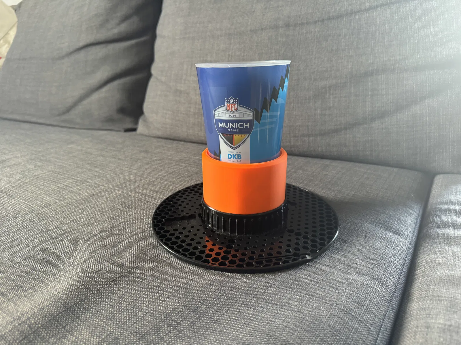 Khác với đa số cup holder khác trên Printables, cái này không cần kẹp vào khe ghế hay móc qua tay vịn — bạn có thể đặt tự do ở bất kỳ chỗ nào bạn cần.