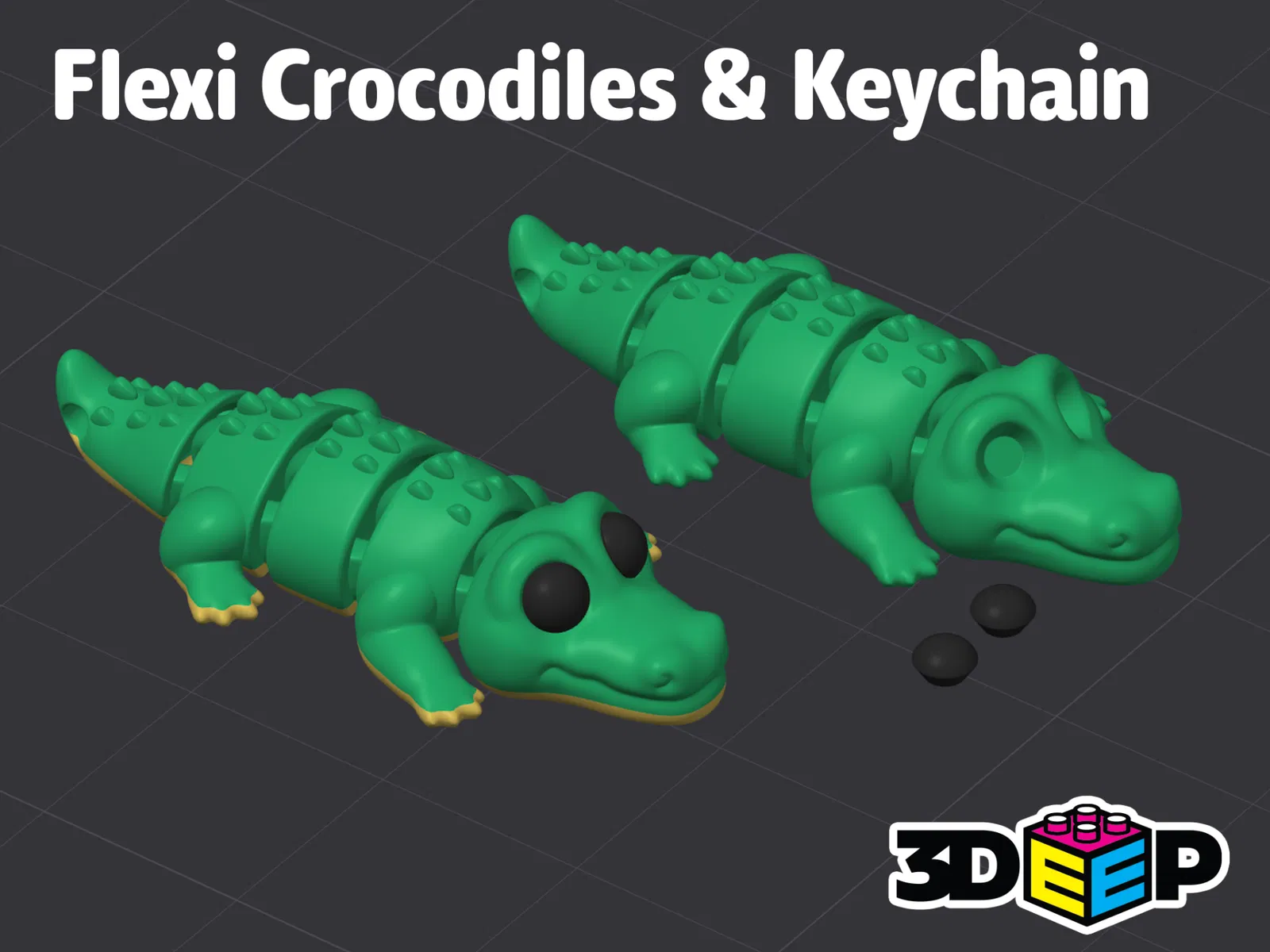 Mẫu cá sấu Flexi kèm móc khóa, thiết kế in liền khớp nên không cần Support hay Brim. Gợi ý cài đặt: layer 0.20, walls 3, infill 20% gyroid, arc fitting bật và giảm tốc ở outer walls + top surfaces.