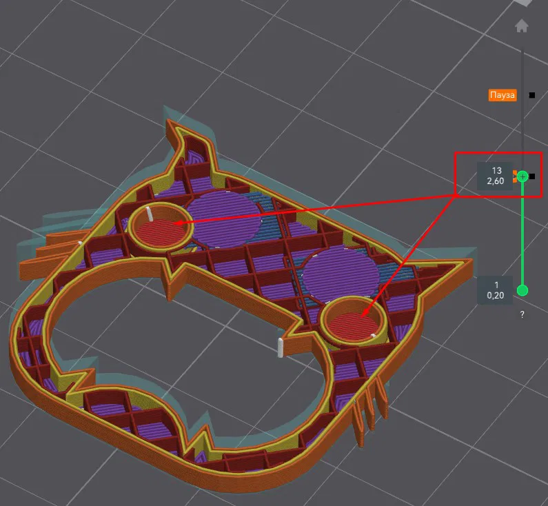 Lần PAUSE thứ nhất - (layer 13) - để đặt nam châm vào rồi in phủ lại để “khóa” nam châm.