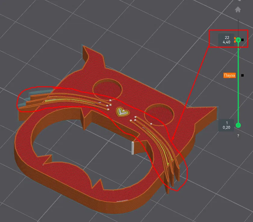 Lần PAUSE thứ hai - (layer 22) - để đổi nhựa, làm mũi và ria màu đen.