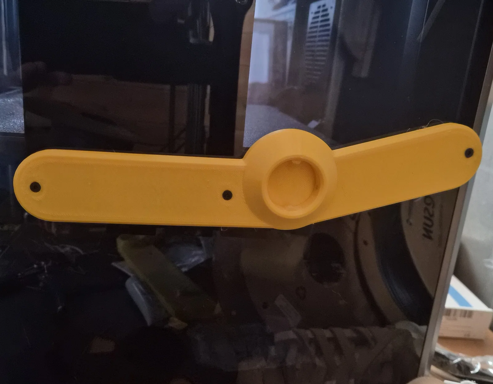 Một bộ gá cuộn filament gắn hông, lắp bằng cách dùng 3 lỗ vít có sẵn trên máy. Bạn sẽ cần vít M3 dài hơn, tối thiểu 12mm (lý tưởng). Nếu cần thì dùng vít dài hơn nữa cũng được, vì chúng chỉ việc vặn sâu thêm qua phần ren của vỏ máy.