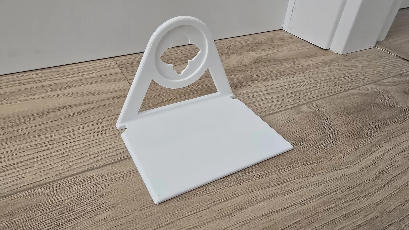 Giá đỡ điện thoại gắn trực tiếp vào ổ cắm chuẩn châu Âu (Schuko), tiện sạc ngay tại ổ điện. Dùng được cho ổ đặt dọc hoặc ngang; khay đỡ lật hai chiều và có rãnh giữ dây sạc gọn gàng.