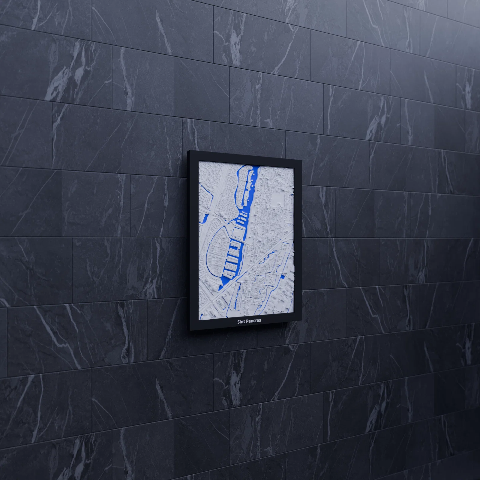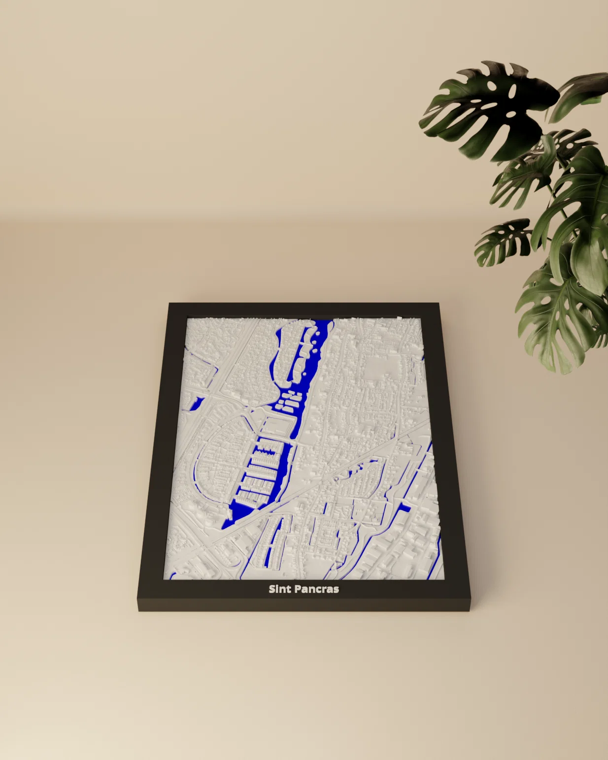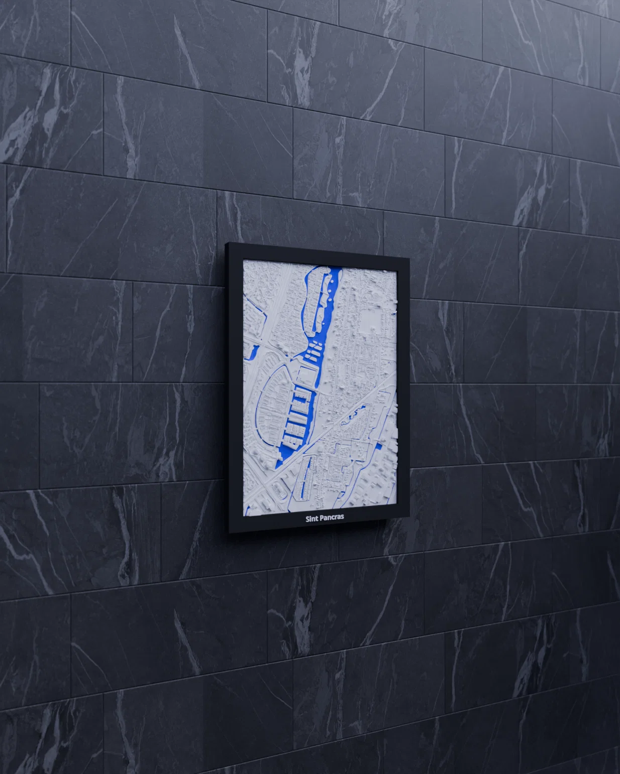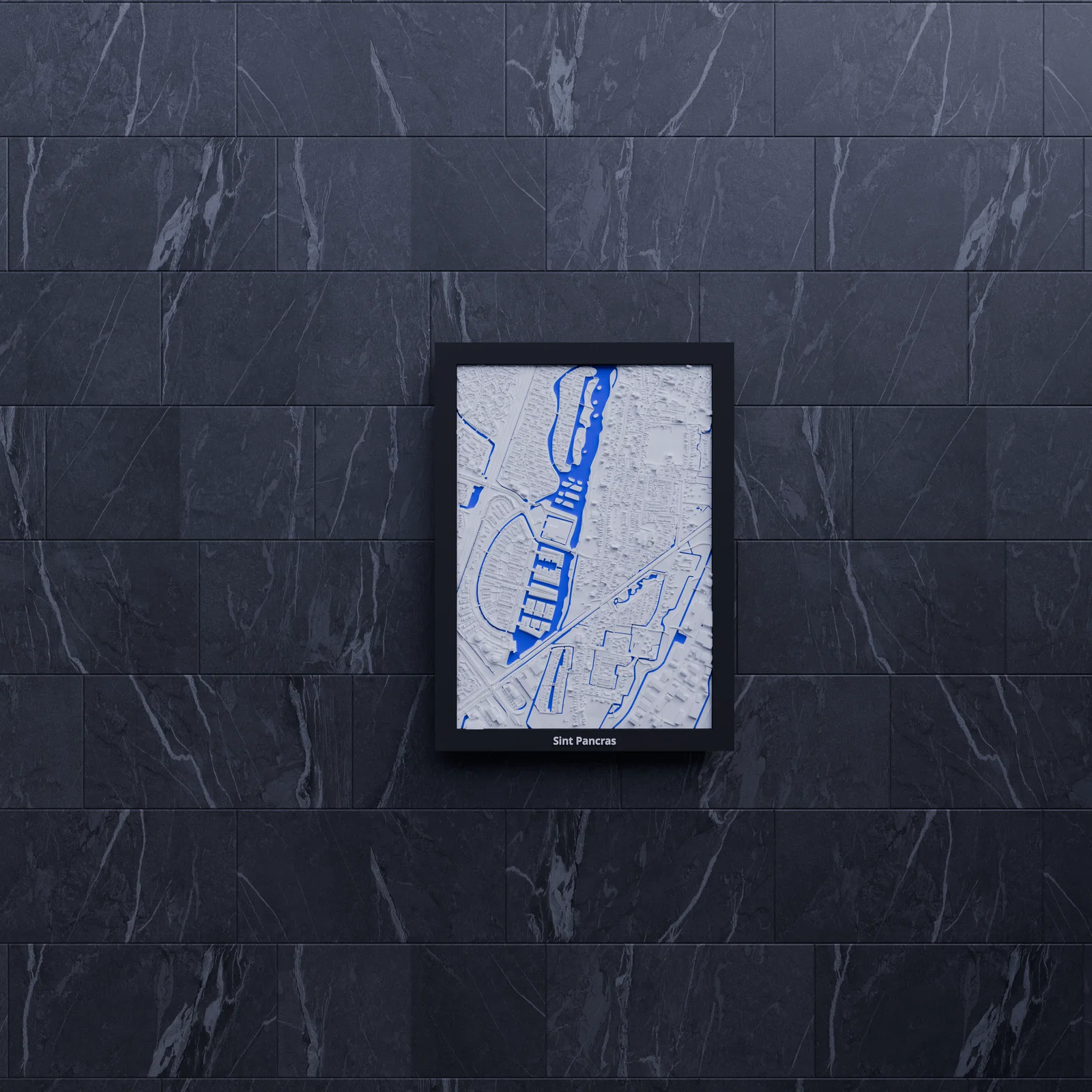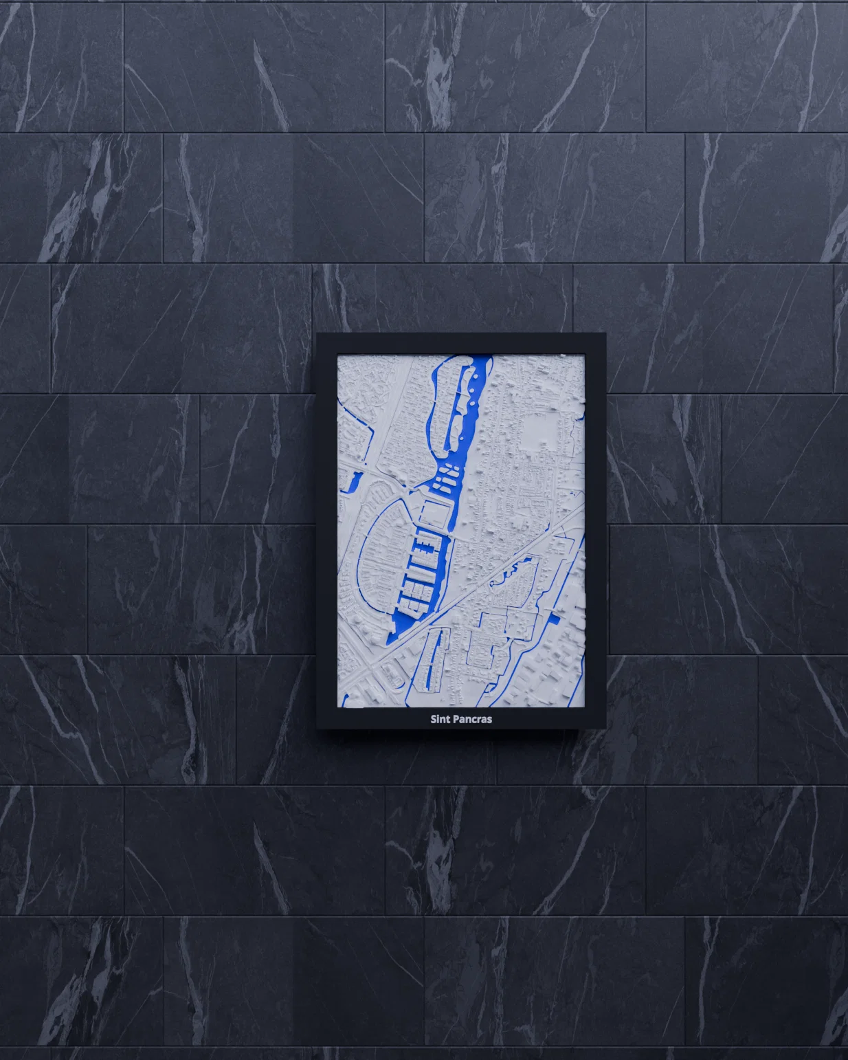 Mô hình địa hình thu nhỏ 3D tái hiện Sint Pancras (Hà Lan) từ dữ liệu địa lý, có khung treo đi kèm. Bao gồm STL và 3MF (Bambu Studio/Snapmaker), phù hợp in trưng bày, học tập hay làm quà.