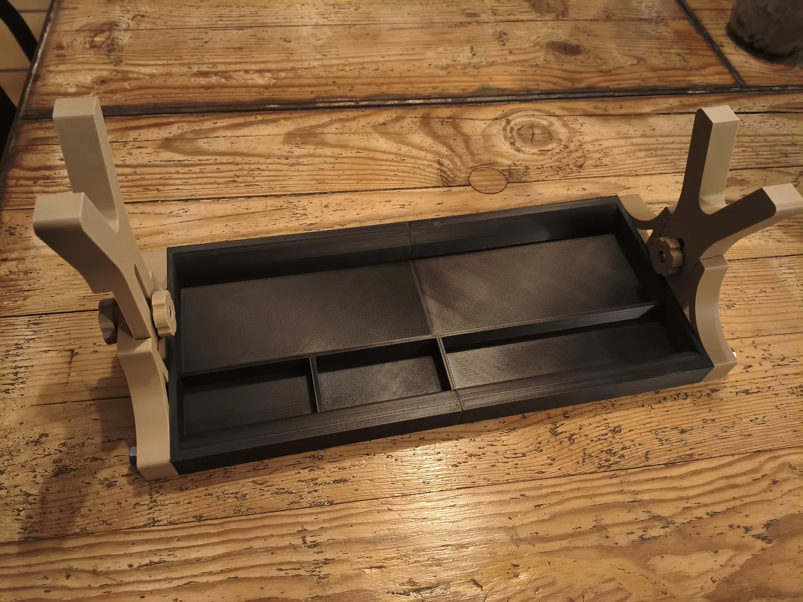 Mình đã tạo một cái khay (tray) bổ sung để chứa đồ, gắn thêm vào giữa 2 cái support; nó còn giúp tăng độ cứng cho toàn bộ cụm.