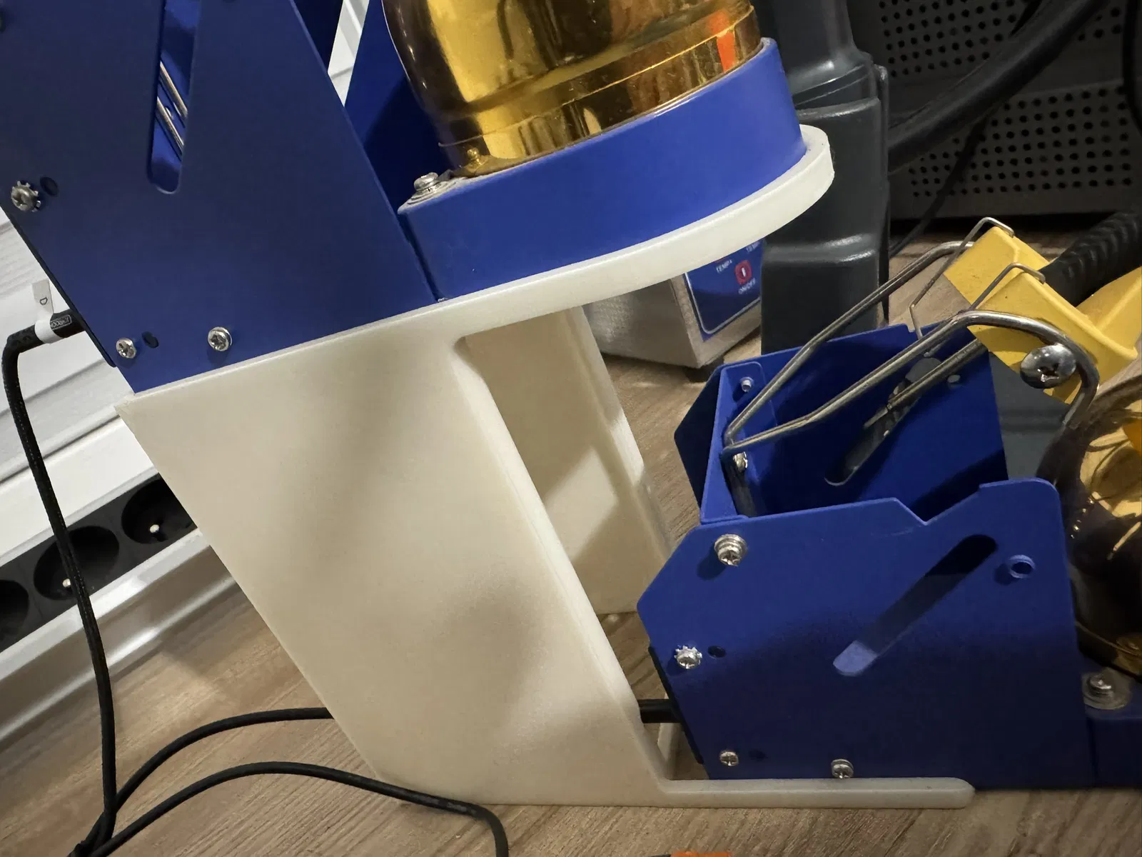 Giá đỡ giúp xếp 2 mỏ hàn Hakko theo chiều dọc để tiết kiệm không gian bàn làm việc. Tương thích với Hakko FM-203 (ví dụ) và có thể in bằng PLA.