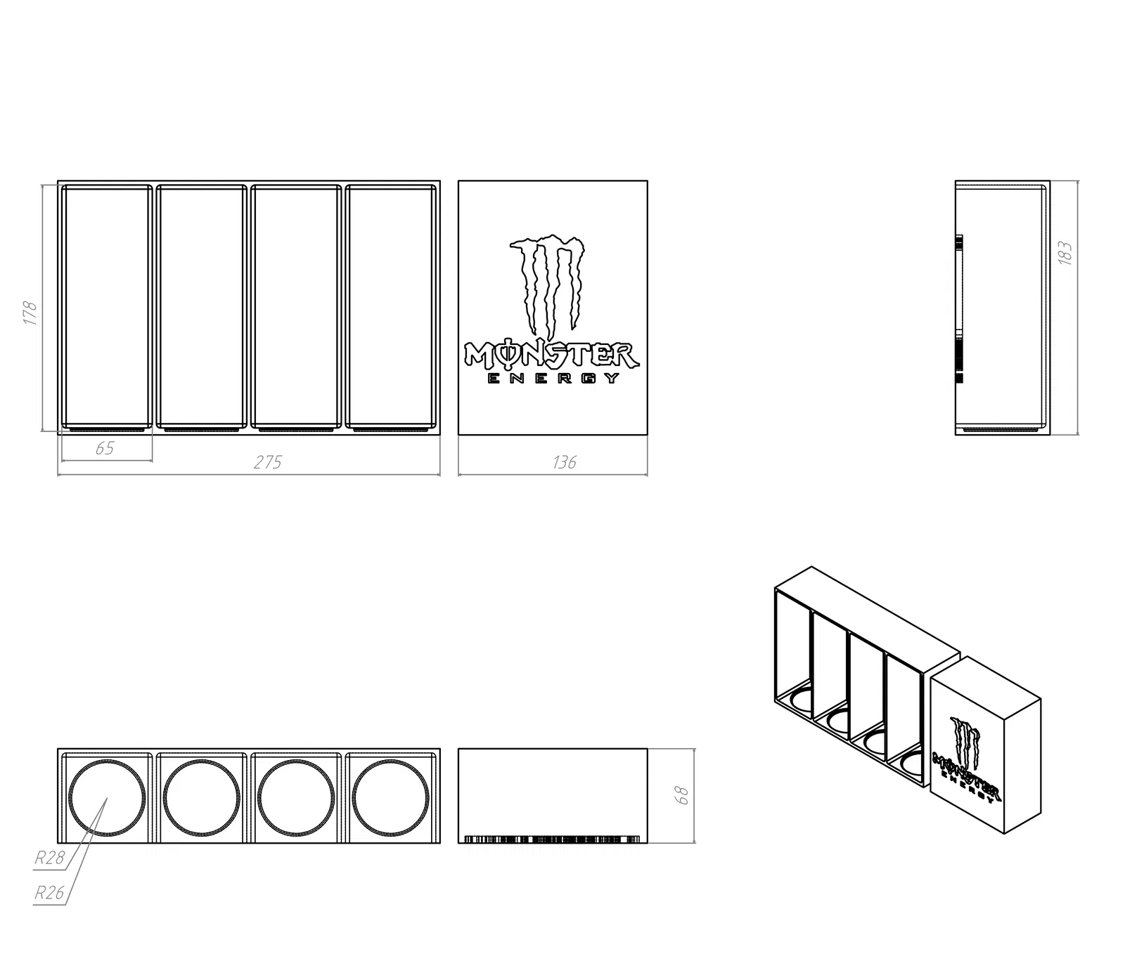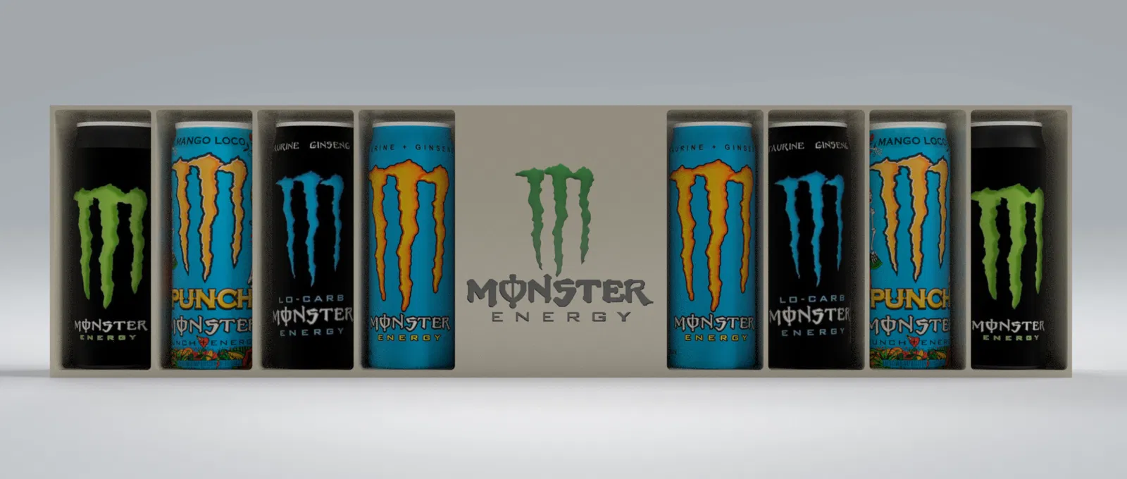 Monster Drinks Stand là kệ để lon Monster với 2 kích thước: 275*178mm và 136*178mm. Phù hợp để trưng bày hoặc sắp xếp lon nước tăng lực gọn gàng trên bàn hay kệ.