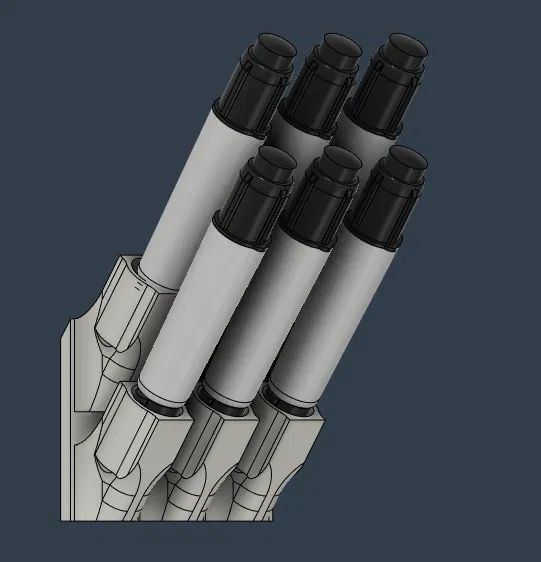 Giá đỡ cho bút lông bảng V-Board Master, chứa tối đa 6 cây. Gọn gàng, dễ lấy, hợp để treo hay đặt gần whiteboard. Phù hợp in 3D (STL), dùng ổn với PLA/PETG.