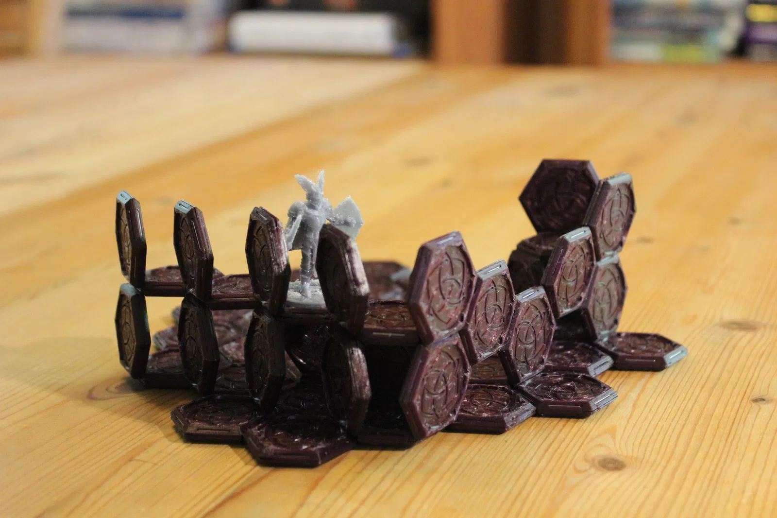 Tile lục giác gắn nam châm đa dụng cho game tabletop: ráp nhanh, dựng terrain/tường/lâu đài đủ kiểu. In 2 nửa, gắn nam châm 1×2,5×10mm xen kẽ cực, ép lại là chơi; rãnh vừa đế mini 25,5mm.