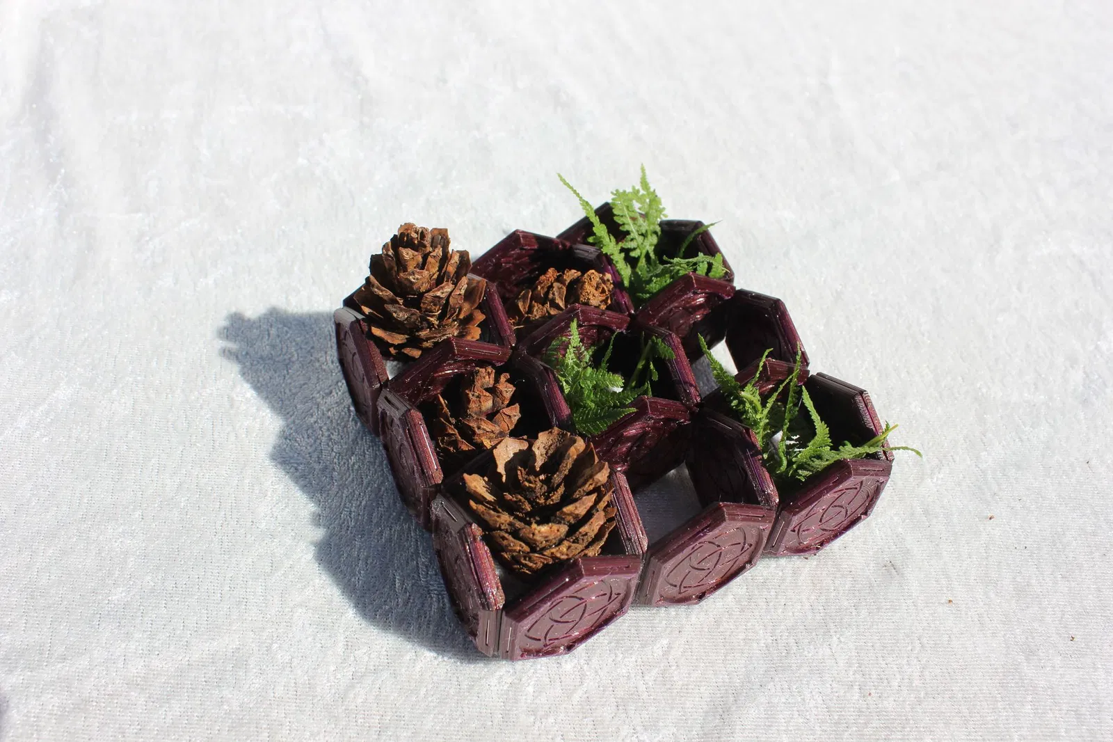 Bạn chỉ cần in 2 nửa, đặt nam châm vào (cứ một viên thì để đầu north pole quay ra ngoài xen kẽ), rồi ép 2 nửa lại với nhau. Nếu lo bị bung ra, bạn có thể thêm chút keo cho chắc, phòng hờ.
