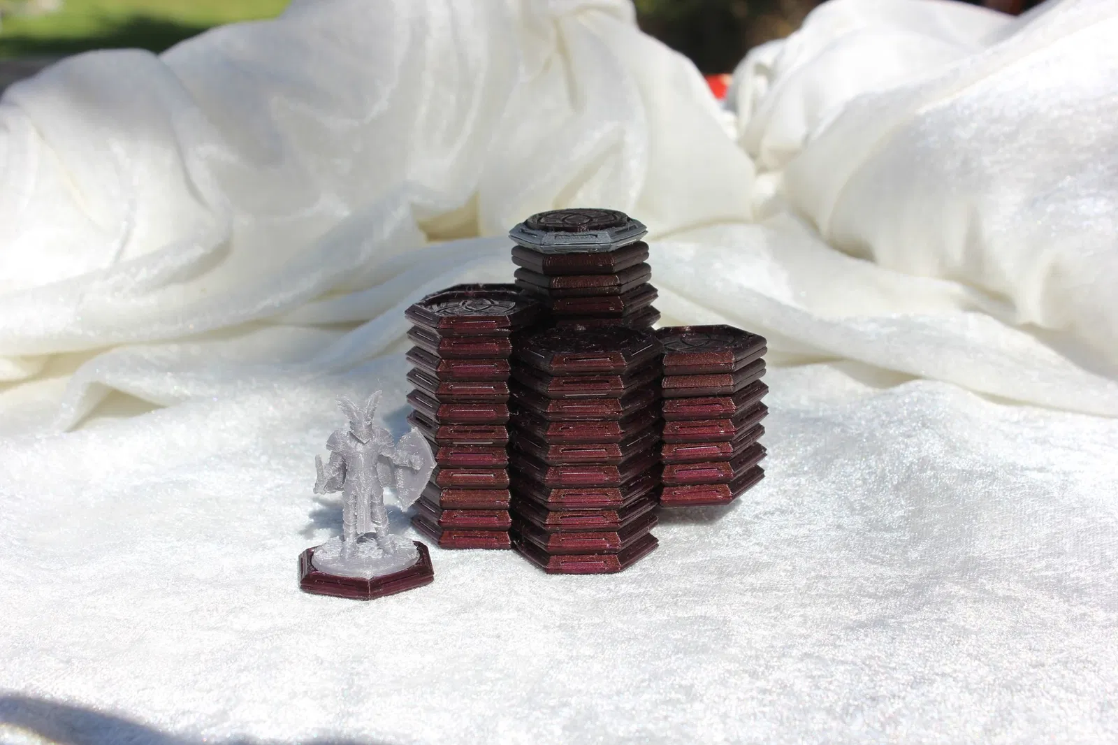 Các tile có rãnh (slotted) để gắn 2 loại chip khác nhau; loại có phần góc sẽ giúp bạn chơi được ngay cả khi dựng ở các góc khá dốc. Rãnh này cũng vừa với miniature có đế tròn đường kính 25,5mm.