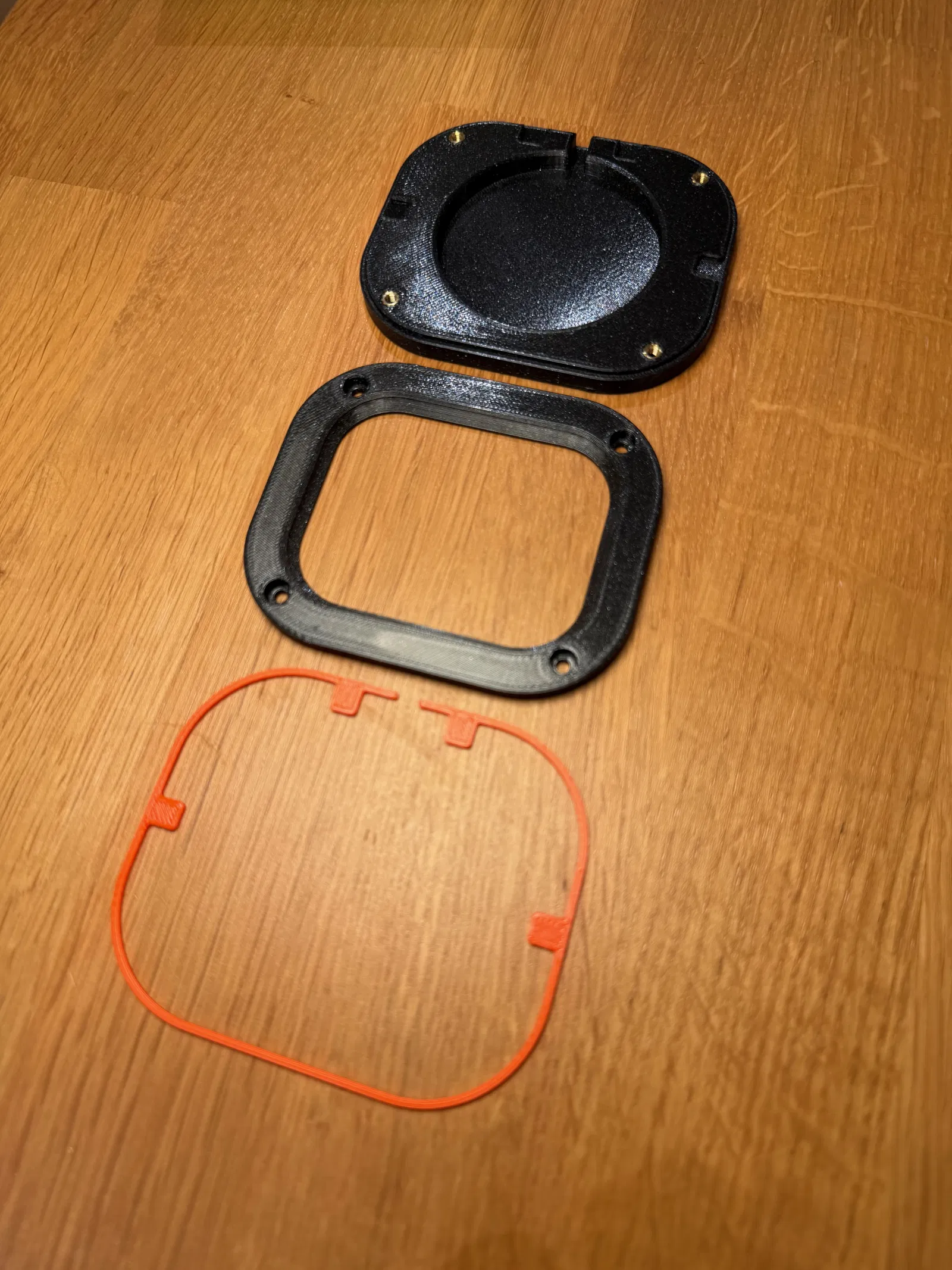 Mẫu được in bằng PETG màu Jet Balck và Prusa Orange, nhưng nhìn chung vật liệu nào cũng ổn. Lưu ý nếu bạn phối nhiều vật liệu khác nhau thì có thể co rút khác nhau.