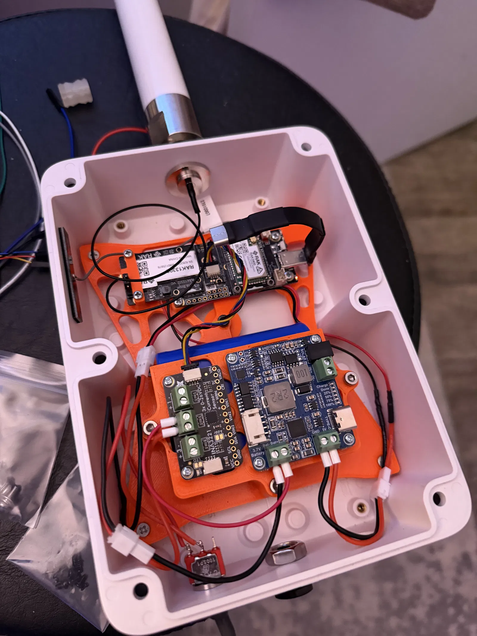Bracket RAKshare cho hộp RAK Unify 180x130x60mm để gắn Waveshare Solar Power Manager (D), Adafruit INA3221 STEMMA QT, pack pin 18650 1S3P và bo RAK 1W (19007/3401/13302).
