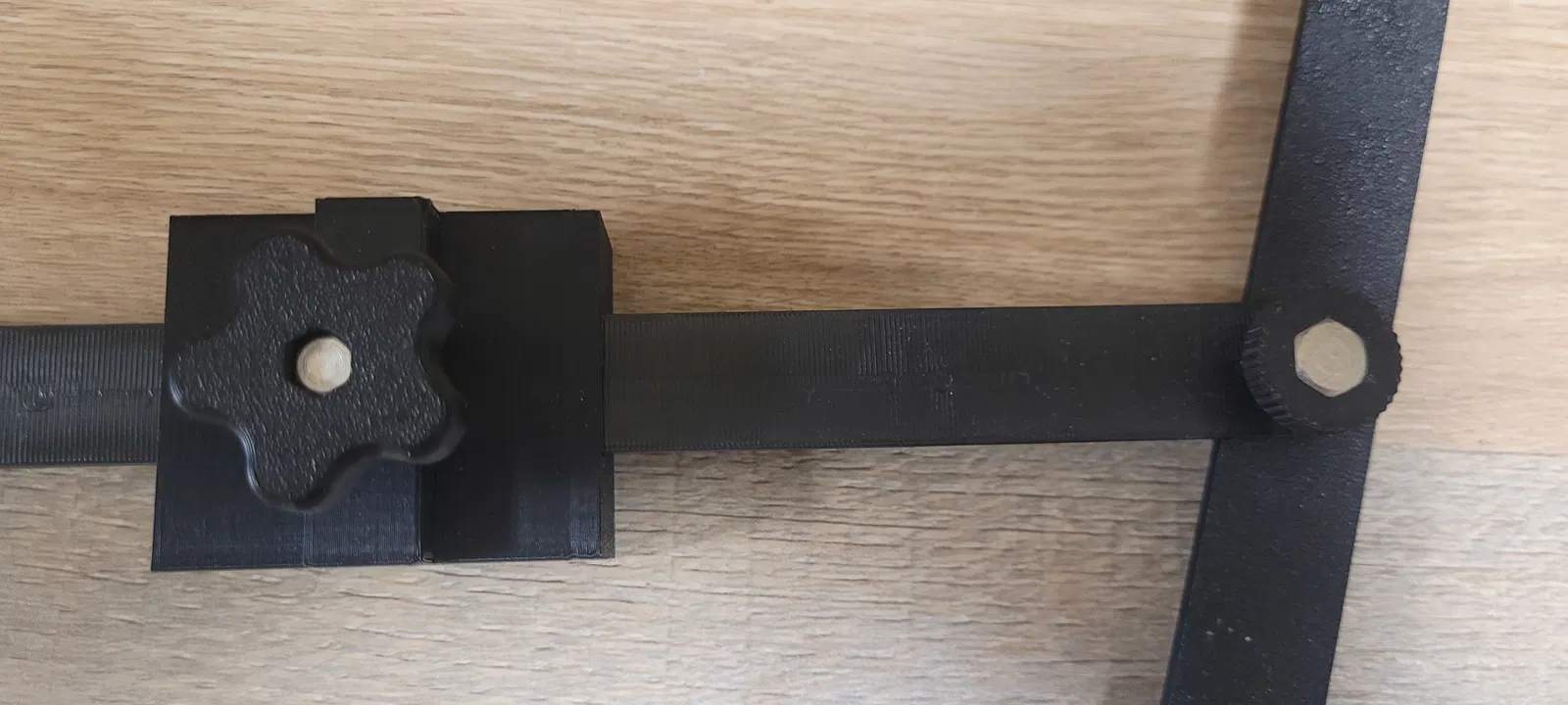 Thước đo trượt (Posuvná měrka) dùng để đo khoảng cách và góc khi cắt gạch lát zám (zámková dlažba). Cần chuẩn bị ốc vít M6-30mm, đai ốc hãm và ốc vít M4 kèm đai ốc để lắp ráp.