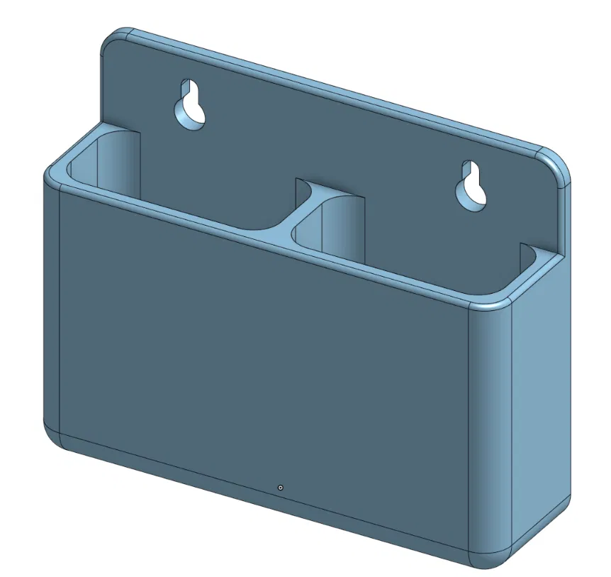 Giá treo tường đơn giản để đựng remote control hoặc vật dụng khác. Thiết kế 2 ngăn (1.1" x 2.3", sâu 2.9") và có khe dưới đáy cho mạt cưa rơi xuống, nhưng khe hẹp nên bút chì không lọt.