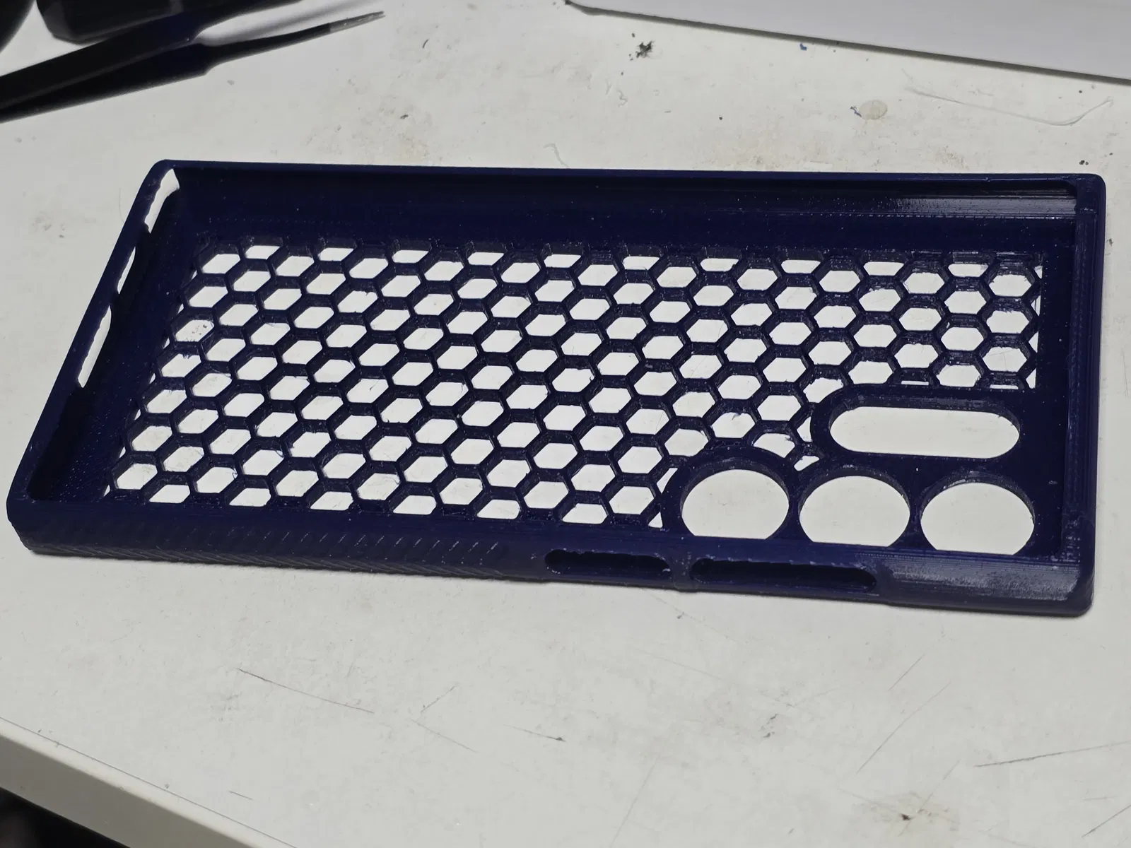 Ốp lưng Samsung Galaxy S24 Ultra kiểu nhẹ, tối ưu khung mỏng nhưng vẫn bảo vệ toàn diện. Mặt lưng honeycomb giúp cầm bám tay hơn và dễ đặt support khi in. Khuyến nghị in TPU với organic tree support.