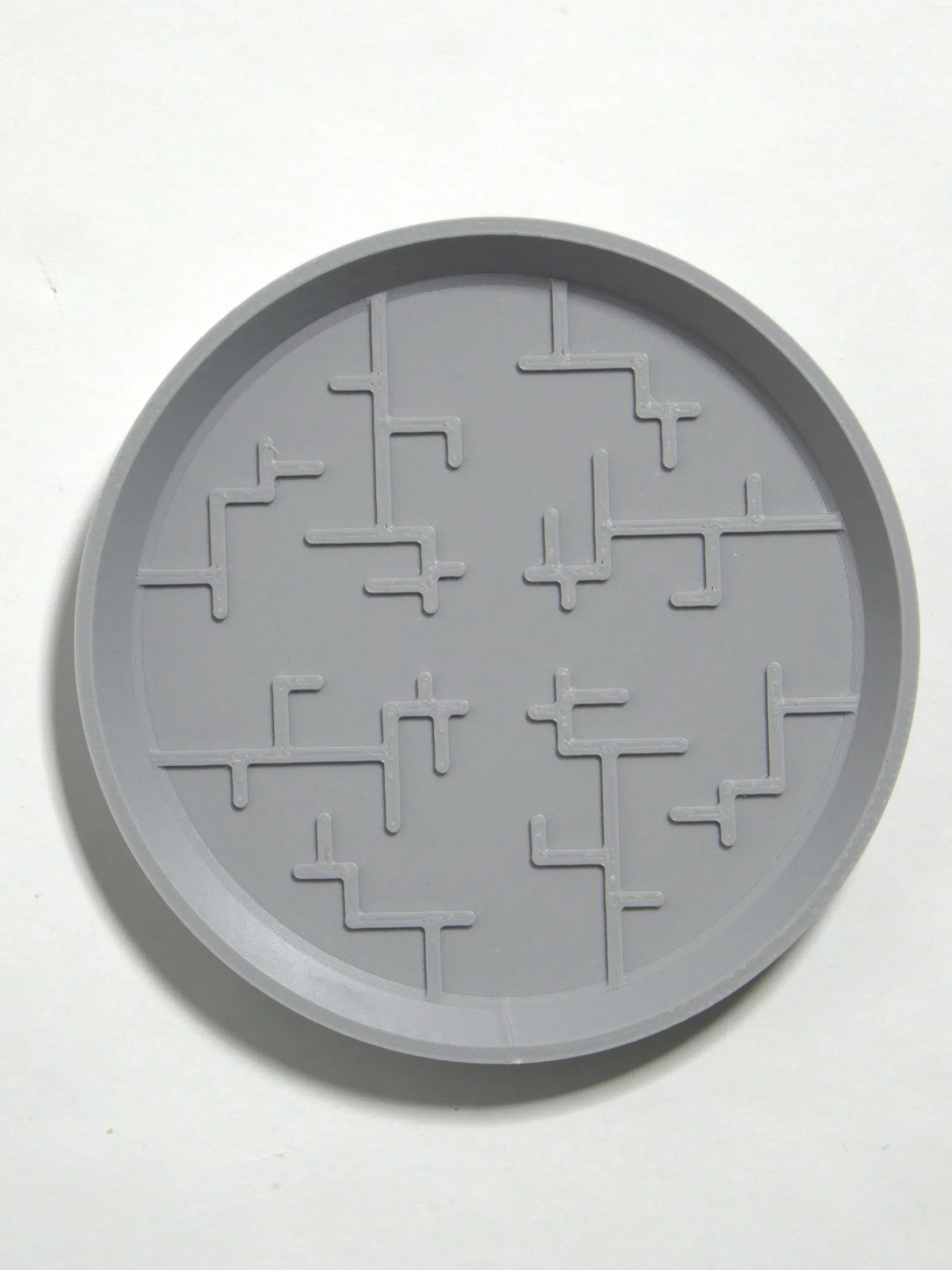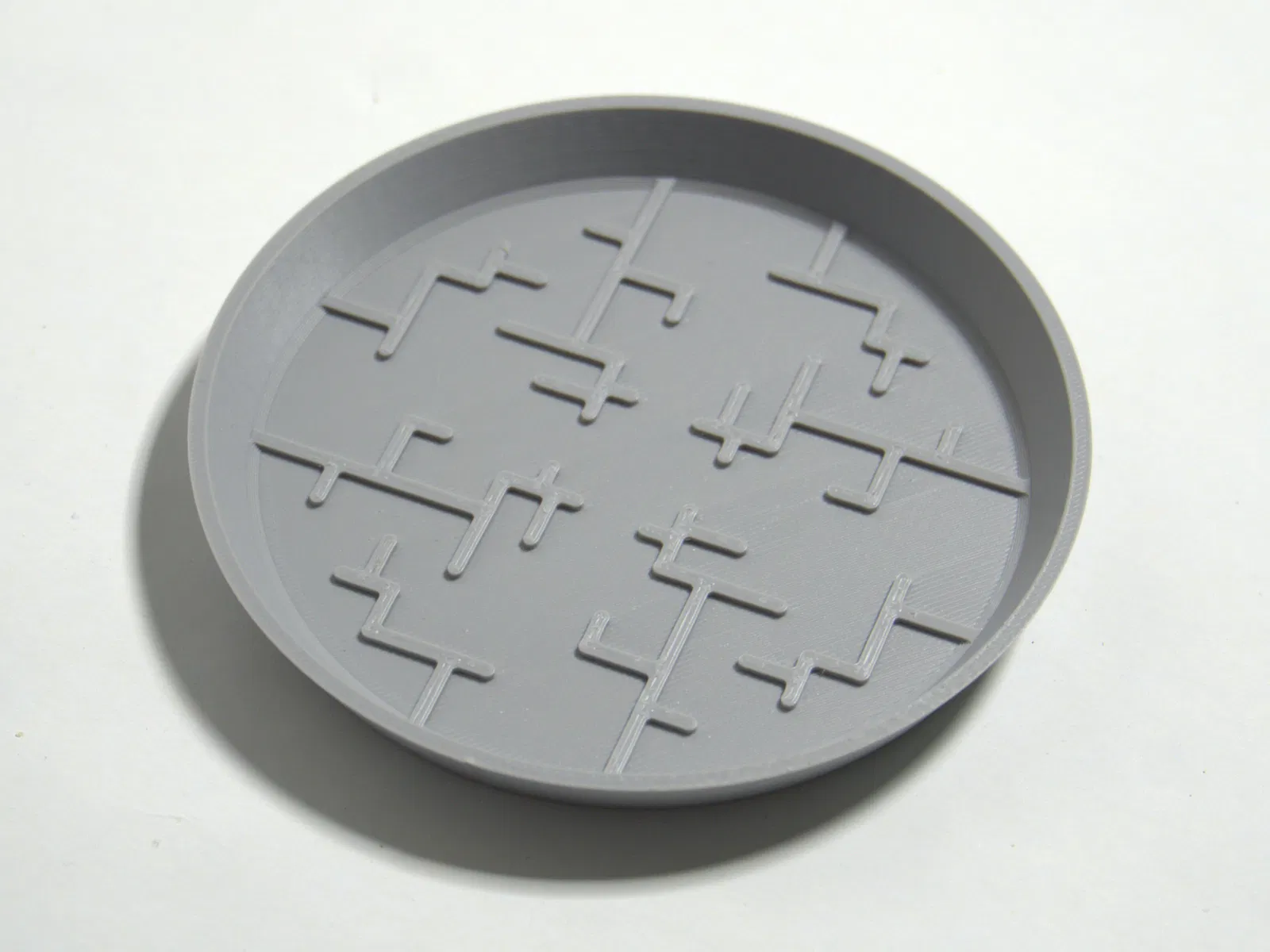 Dĩa lót chậu tối giản với họa tiết hình học hiện đại lấy cảm hứng Nhật Bản. Đáy chậu tựa trên gờ nâng tạo khe hở, giúp tránh rễ ngâm nước đọng mà vẫn hứng nước tràn. Có 2 size, in phẳng không cần support.