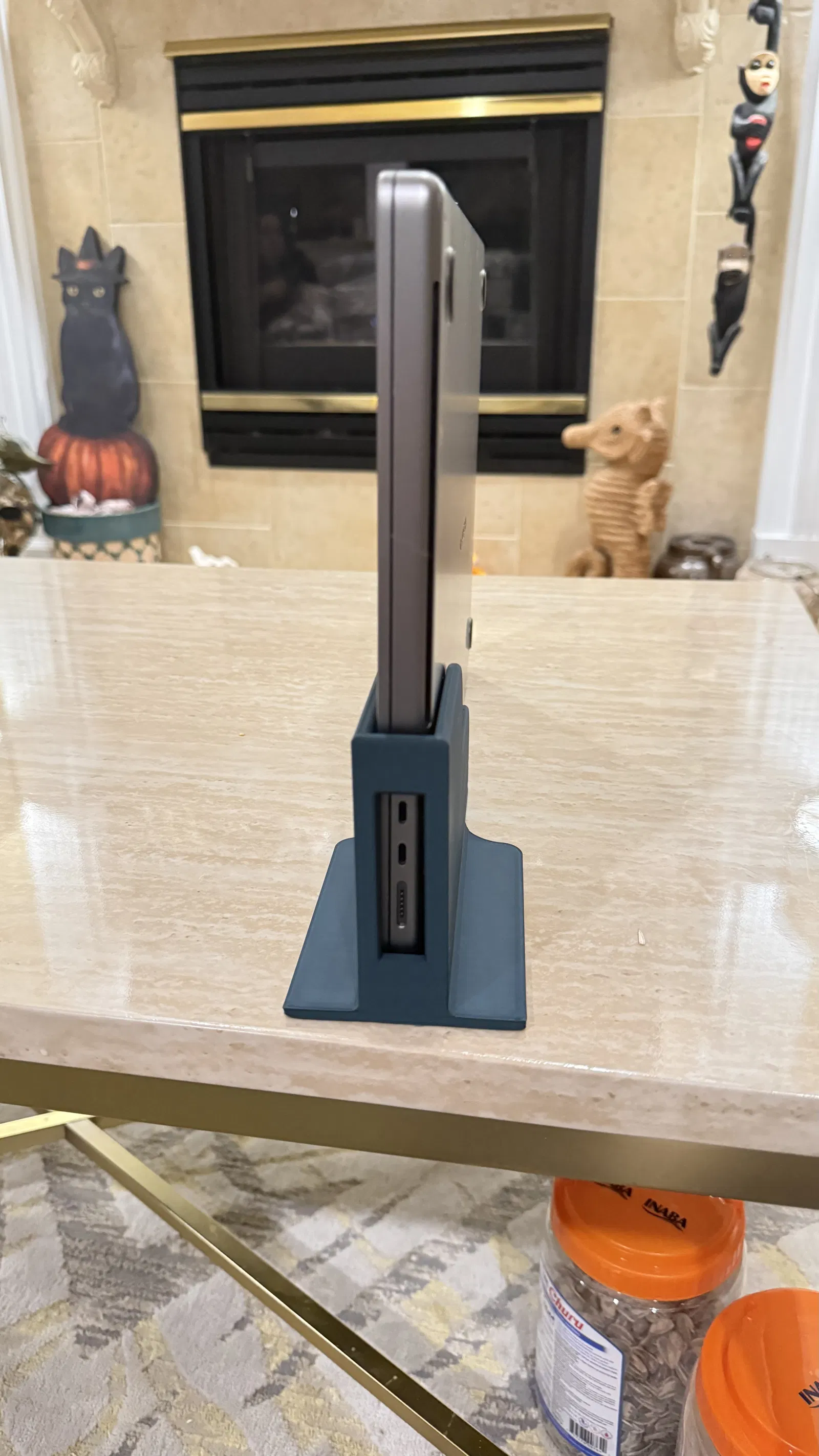 Đây là một cái dock cho MacBook M2 16". Mình dùng nó để dựng đứng MacBook khi đang cắm qua một USB C dock. Mình có thêm mấy cái riser nhỏ ở đáy của stand và các khe thông gió để nhiệt thoát ra. Chỉ cần supports cho phần lỗ mở phía sau.