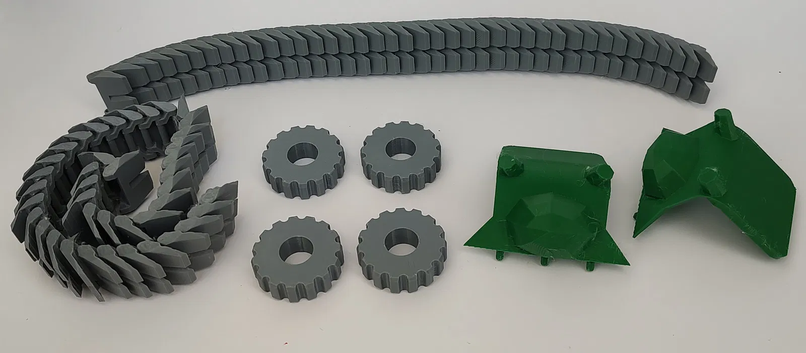 In các miếng xích/bánh xích (chain/track) bằng filament mềm (ABS/ASA/PETG) sẽ giúp ráp các cụm dễ hơn (ít cần dùng lực hơn).