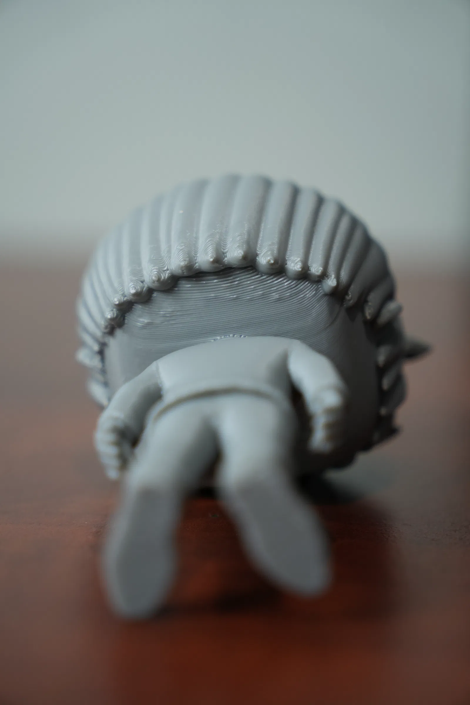 Chỉ chỉnh sửa nhẹ bằng chế độ Sculpt của Blender. Mẫu được xoay để tránh phải dùng quá nhiều tree supports ở phần cằm, dùng automatic supports.