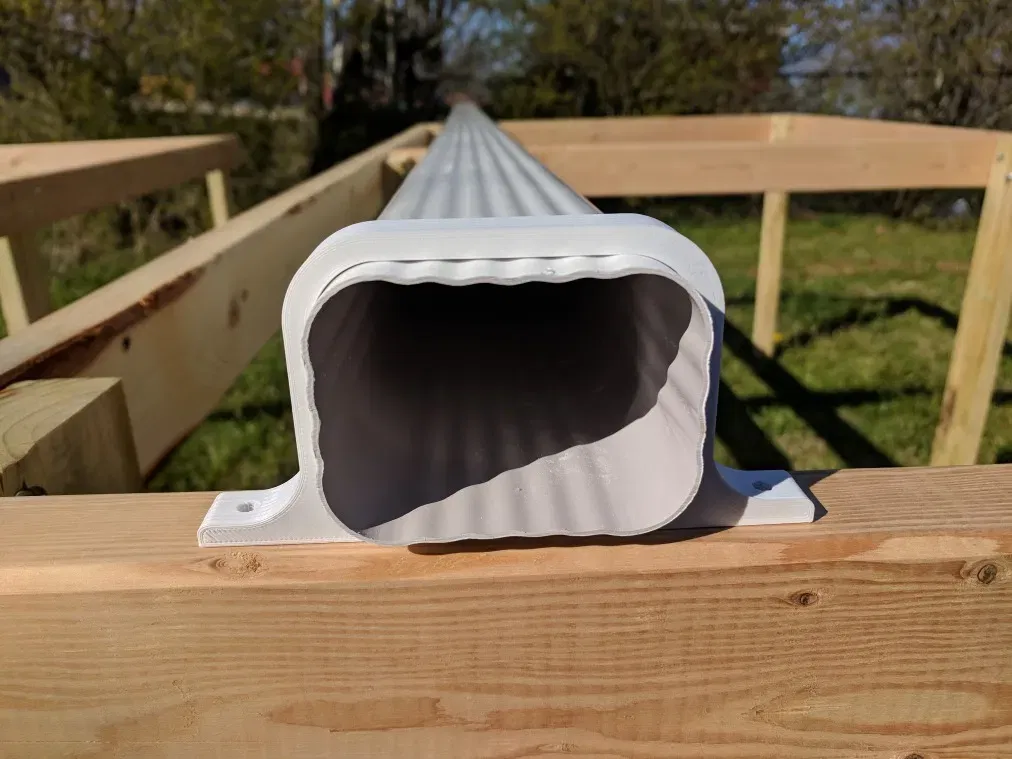 Ngàm/giá đỡ dùng để giữ ống máng xối (downspout) vinyl kích thước 4x3. Bản remix được chỉnh để phù hợp với loại downspout lớn hơn.