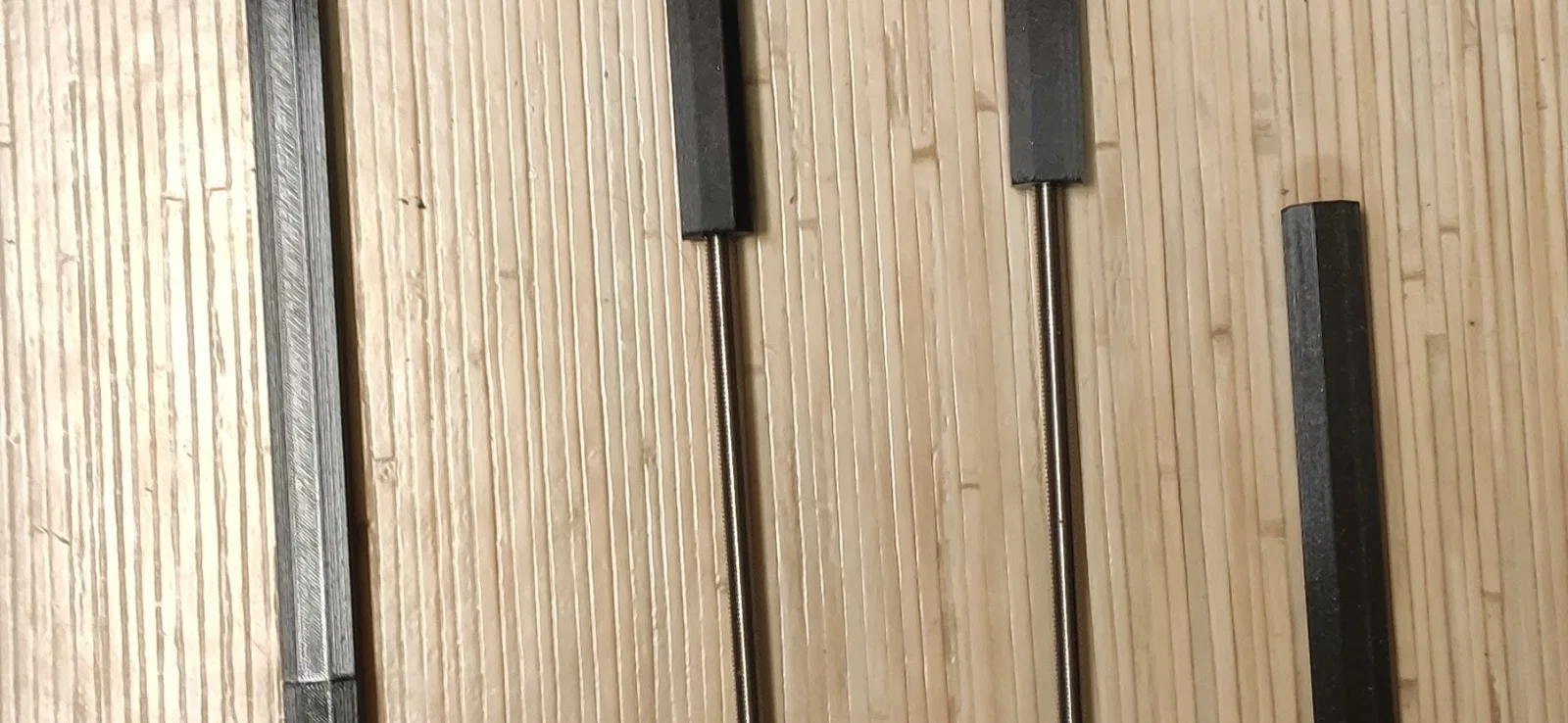 - Vặn (!), không đẩy, thanh ren vào các lỗ của 2 mô hình tương ứng (thanh ren tự tạo ren trong vật liệu PETG..)