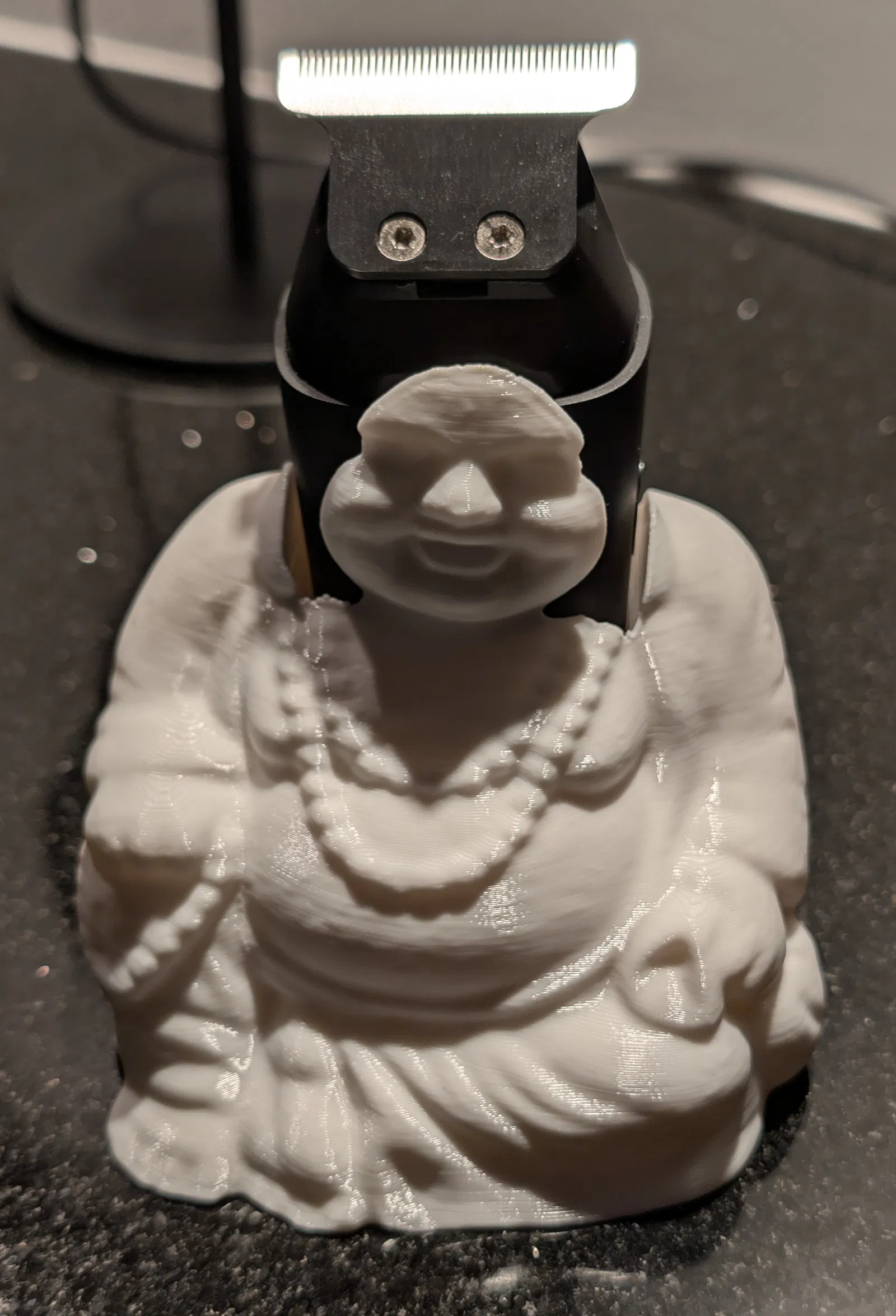 Để dựng cây tông đơ Hummingbird đứng thẳng không phải lúc nào cũng dễ. Mẫu này giúp làm chuyện đó dễ hơn theo kiểu gọn gàng, nhìn cũng đẹp. Nếu làm thêm phần đi dây sạc (charging cable) âm bên trong thì sẽ hay nữa, nhưng phiên bản này mình chưa làm.