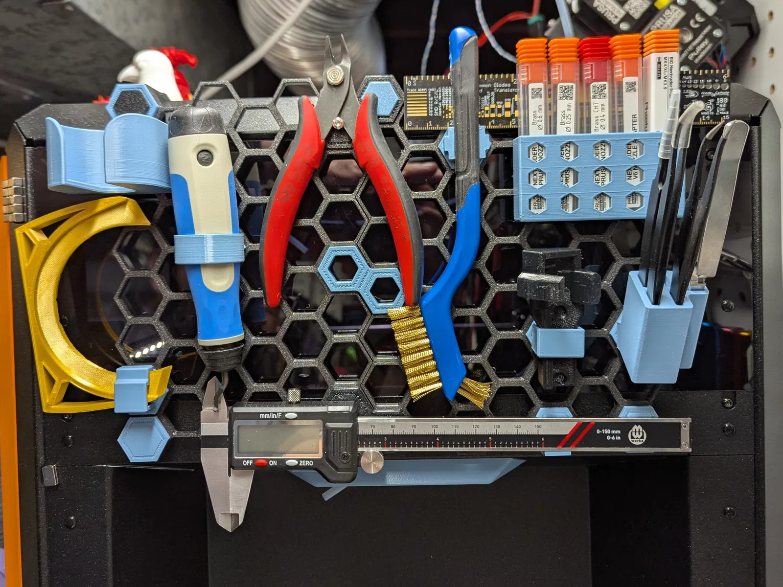 Đây là một giải pháp honeycomb storage wall (HSW) cho Prusa CORE One. Mình chỉ cần vài món dụng cụ/phụ kiện hay xài để trong tầm tay, và bộ này đáp ứng đúng nhu cầu đó!