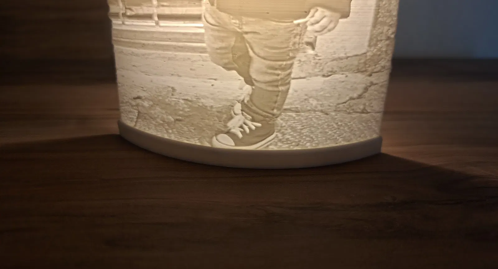 Đế này lý tưởng cho các hình ảnh litho được làm bằng https://3dp.rocks/lithophane/, chiều cao tối đa khoảng 140 mm, độ dày viền 3 mm, góc 90.
