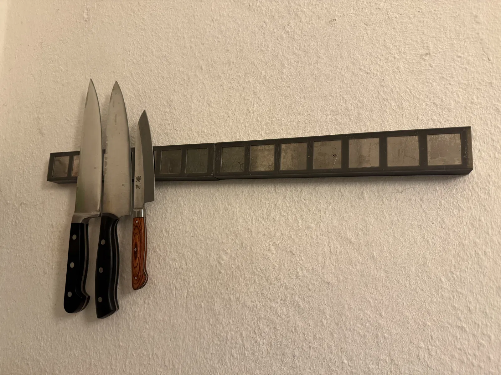 Thanh treo dao nam châm rất tiện, nhưng bề mặt kim loại cứng có thể làm mẻ lưỡi theo thời gian. Vấn đề này càng rõ với các loại dao Nhật có độ cứng cao. Ống bọc tạo một bề mặt “hạ cánh” mềm hơn nhưng vẫn cho phép nam châm giữ dao chắc chắn. Thanh treo dao nam châm rất tiện, nhưng bề mặt kim loại cứng có thể làm mẻ lưỡi theo thời gian. Vấn đề này càng rõ với các loại dao Nhật cứng hoặc lưỡi gốm (ceramic). Ống bọc tạo một bề mặt “hạ cánh” mềm hơn nhưng vẫn cho phép nam châm giữ dao chắc chắn.