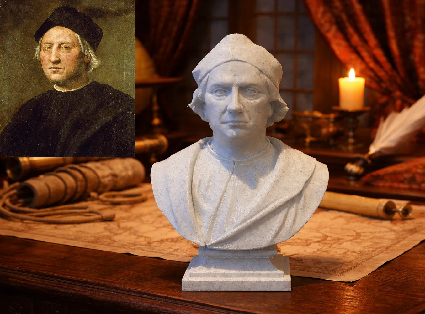 Bức tượng bán thân này hướng tới việc tái hiện hình ảnh lịch sử và mang tính biểu tượng của nhà thám hiểm như cách nó đã được định hình qua nhiều thế kỷ — giữa một nhân vật của khám phá, phiêu lưu hàng hải và một bước ngoặt lớn trong lịch sử toàn cầu.