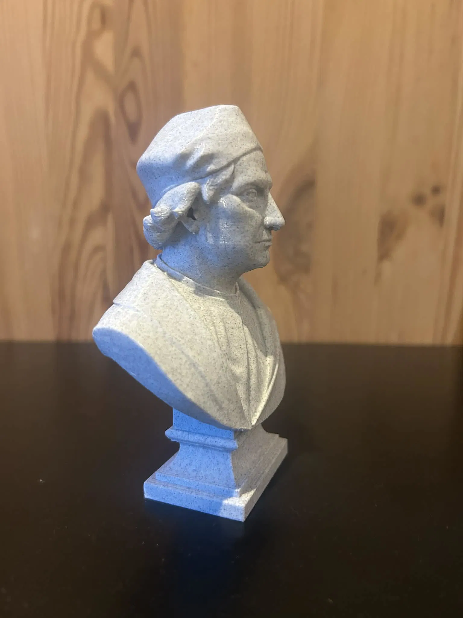 Mẫu tượng bán thân Christophe Colomb (Christopher Columbus) dựa trên hình tượng phổ biến nhất: gương mặt thon dài, ánh nhìn cương quyết và mái tóc ôm trán. Thiết kế khối rõ ràng, dễ in 3D, tái hiện biểu tượng của Thời đại Khám phá.