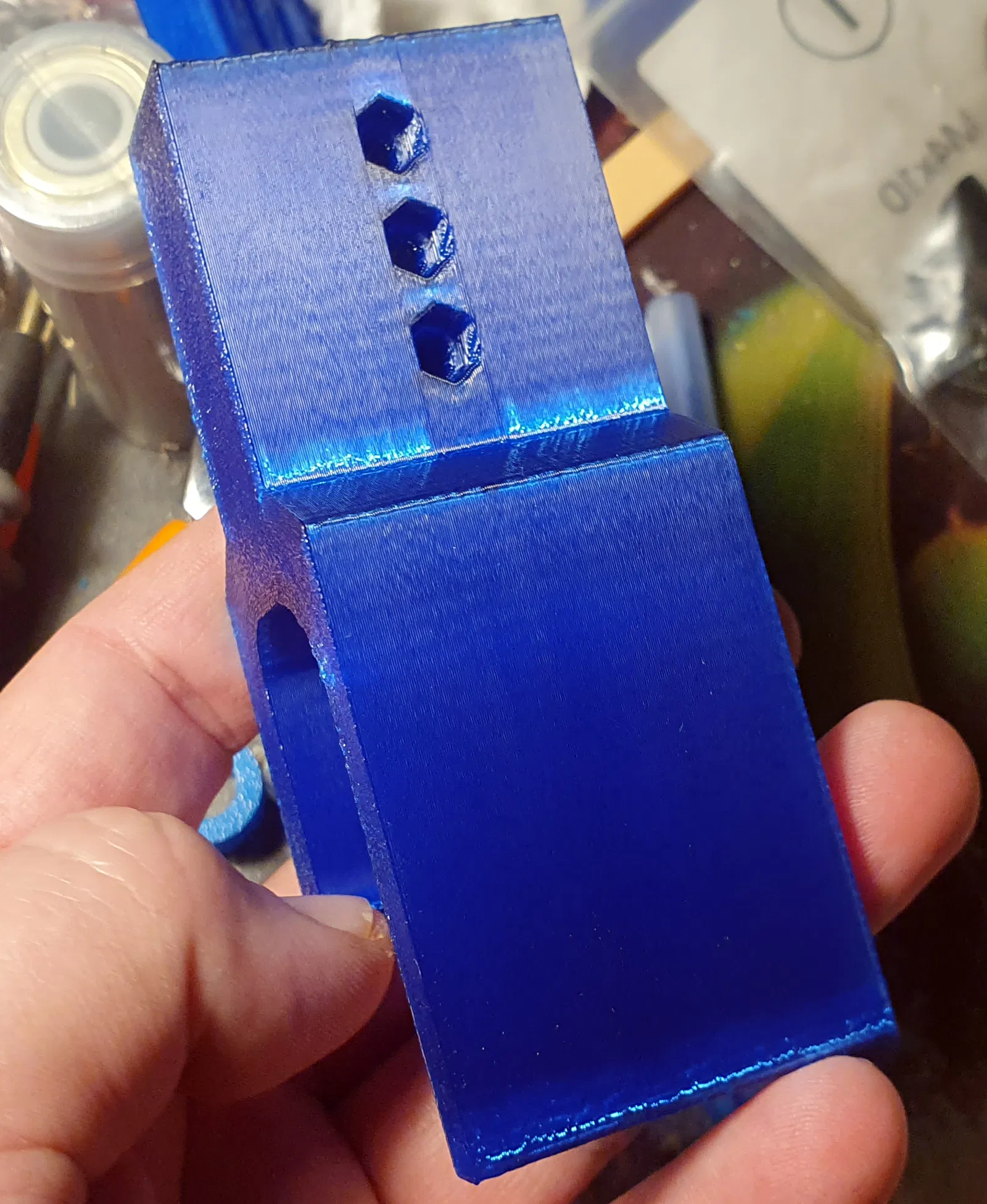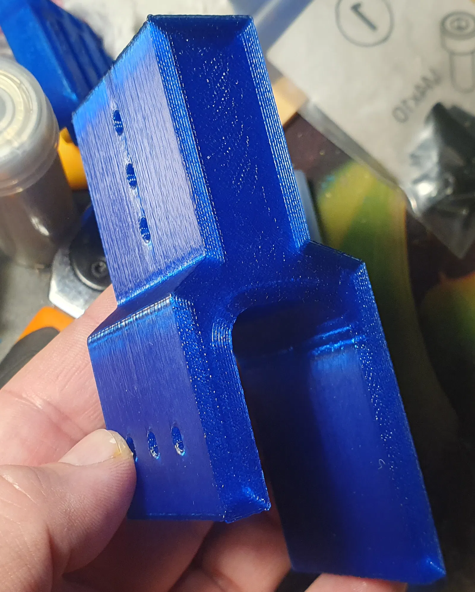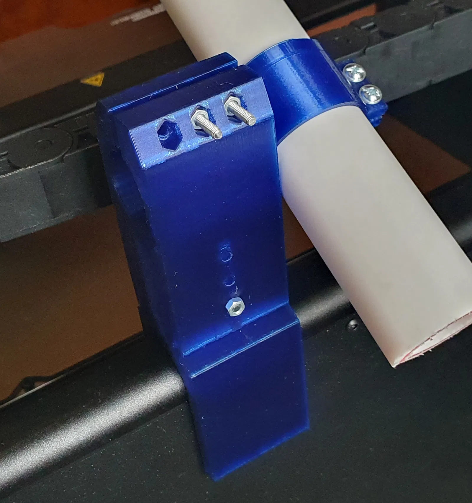 Ngàm gắn backplate dạng universal cho máy in Flybear Reborn 3. In bằng nhựa PETG. Phần trên có thể chỉnh sửa để phù hợp với bất kỳ loại vật liệu nào; mình thiết kế bản này để giữ cuộn TPU. Góc nghiêng có thể điều chỉnh. Dùng tán lồng M3 (M3 cage nut) tiêu chuẩn để bắt lên máy. Khi in, canh hướng đặt chi tiết để tối đa độ bền chịu uốn. Vị trí lắp mặc định là 32mm (ống nước polypropylene tiêu chuẩn).