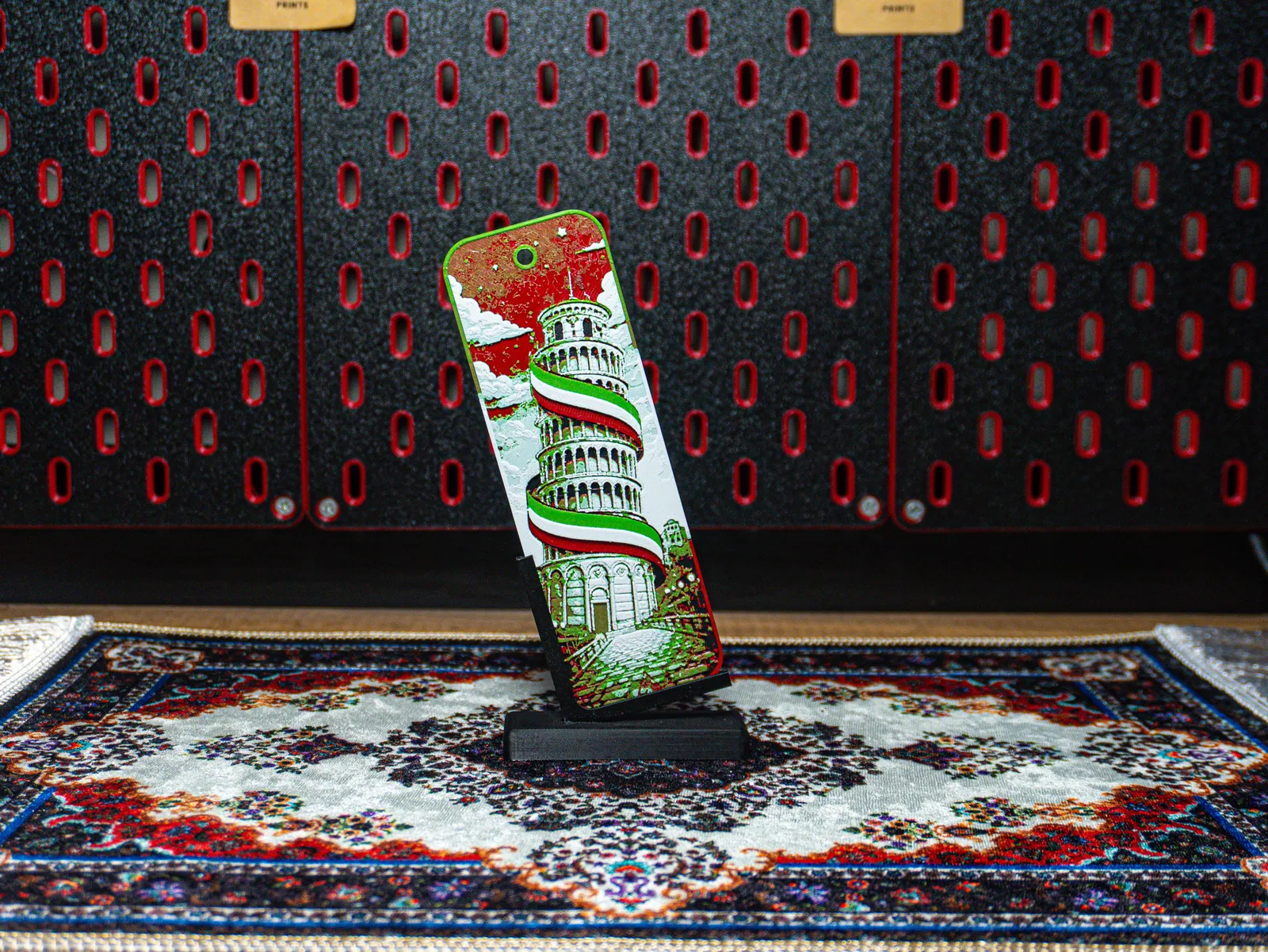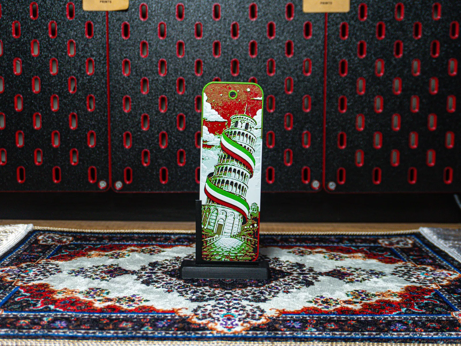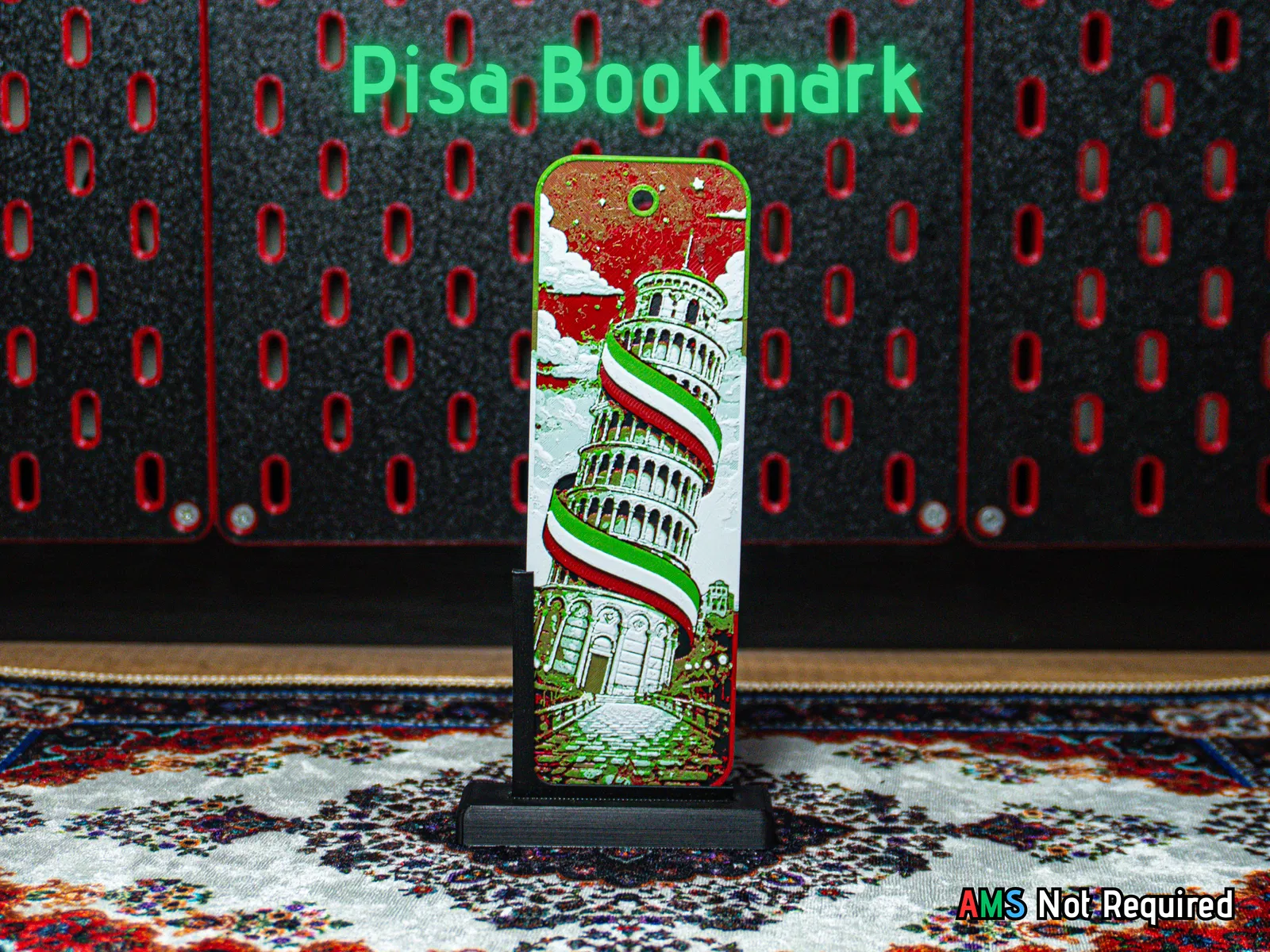 Bookmark Tháp Nghiêng Pisa - Hueforge, lấy cảm hứng từ biểu tượng nước Italy và có điểm nhấn dây ruy băng cờ Italy. Hợp cho đọc sách, học tập, journaling hoặc làm quà tặng nhỏ mà ý nghĩa.