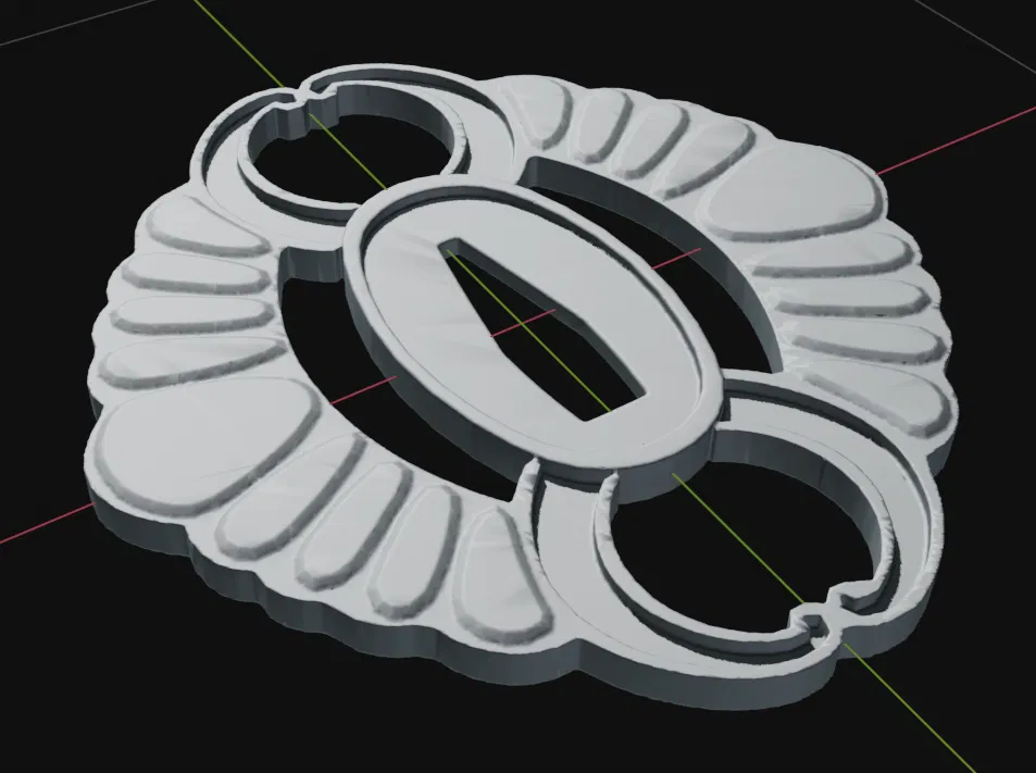 File tsuba cho Magatsumi trong Kagurabachi, có bản cho lưỡi kiếm thật (dày 7mm) và bản cosplay cho lưỡi prop rộng hơn. Có bản tách 2 nửa để in phẳng dễ hơn. Hỗ trợ OBJ và STL.