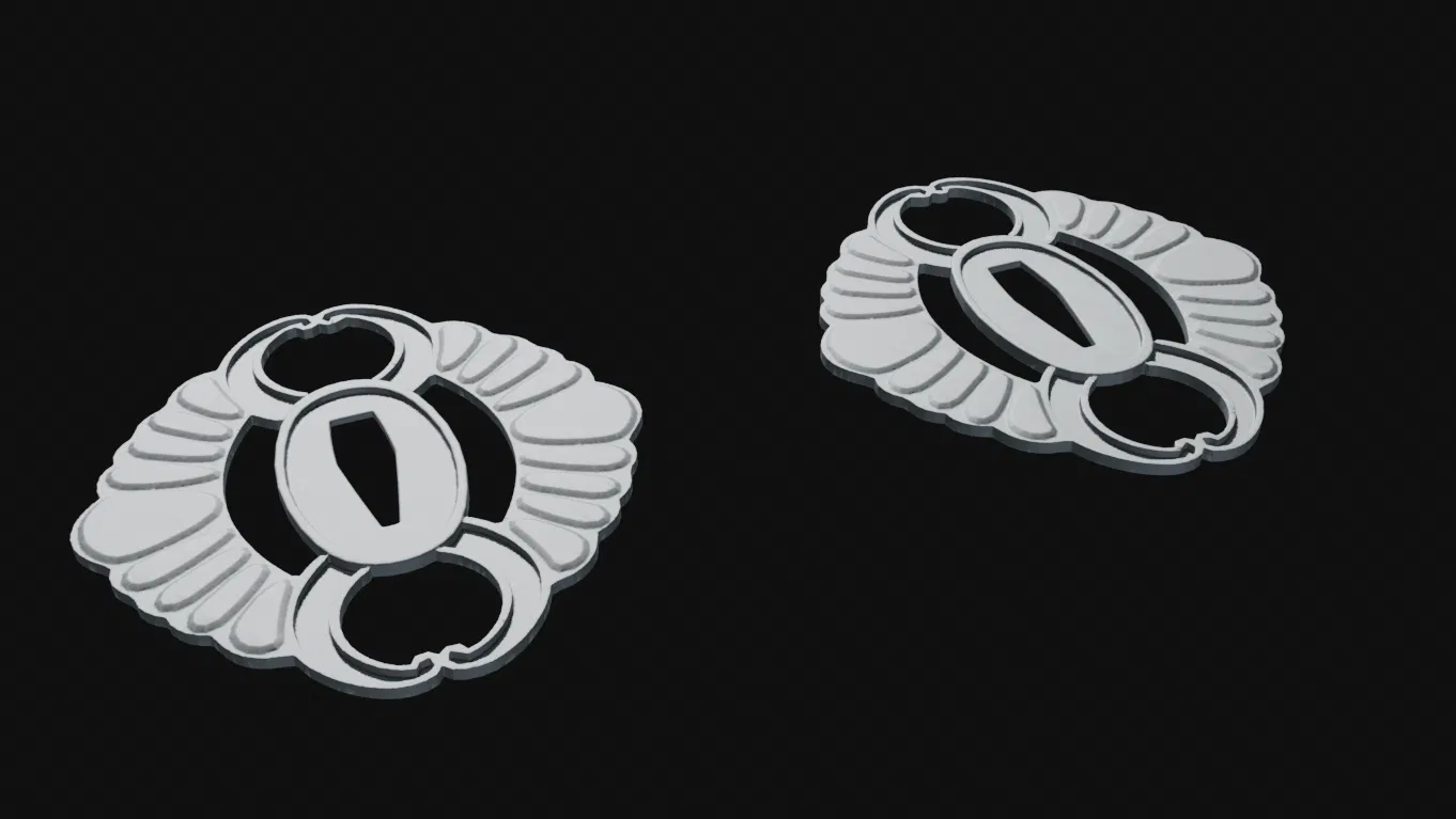 File tsuba, tách làm 2 nửa để in phẳng dễ hơn