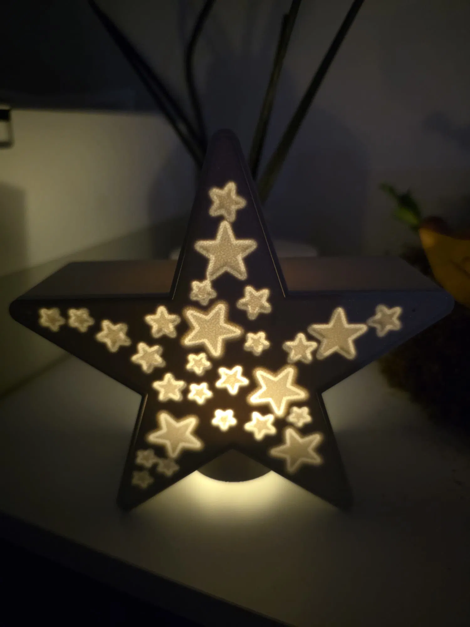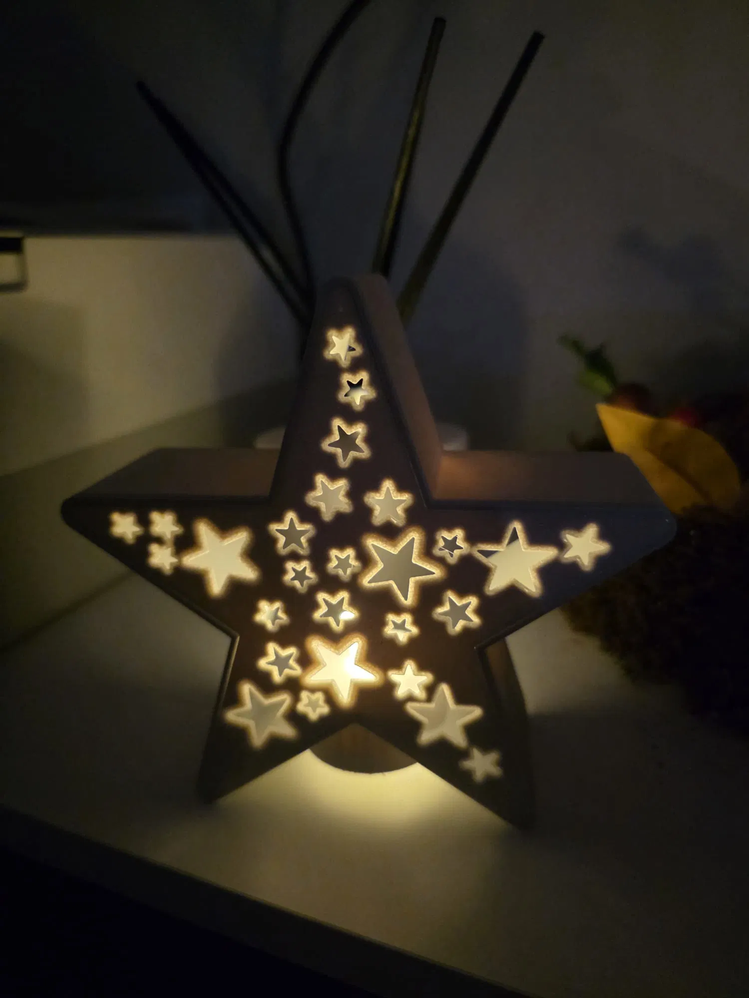 Đèn ngủ "Stars - in Star" là món decor xinh xắn cho căn nhà của bạn. Thiết kế ngôi sao lồng ngôi sao tạo hiệu ứng ánh sáng ấm áp, phù hợp dùng làm điểm nhấn trang trí trong phòng ngủ hoặc phòng khách.